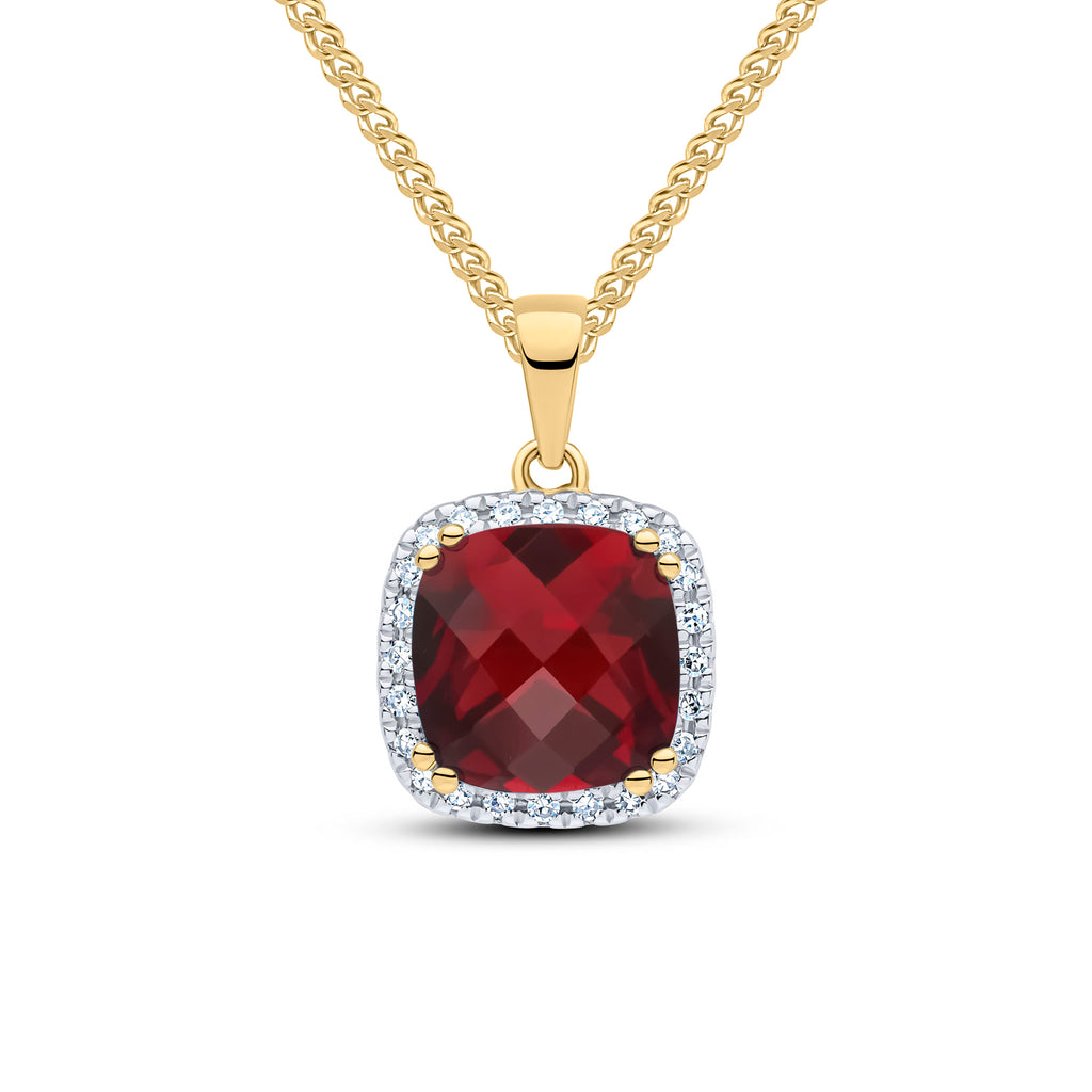 9CT Yellow Gold Cushion Garnet & Diamond Cluster Pendant 8mm