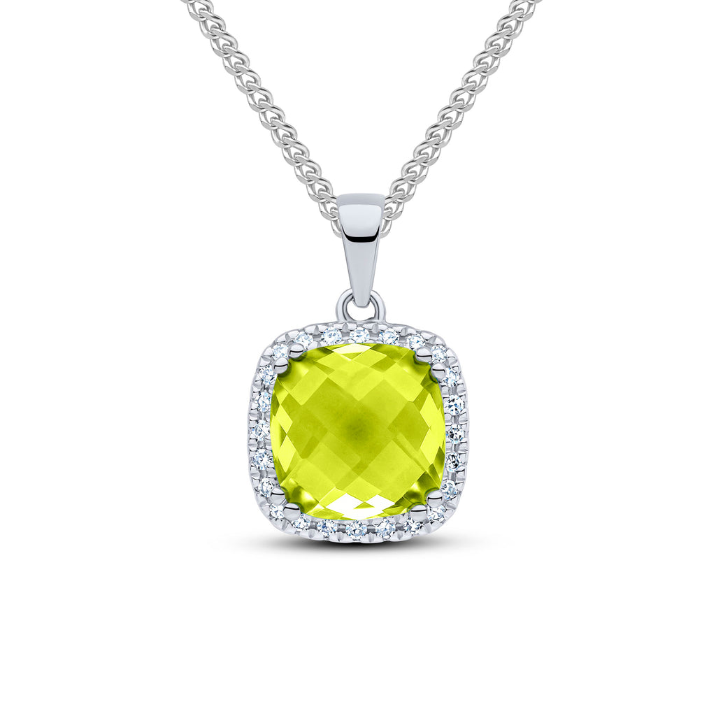 9CT White Gold Cushion Peridot & Diamond Cluster Pendant 8mm