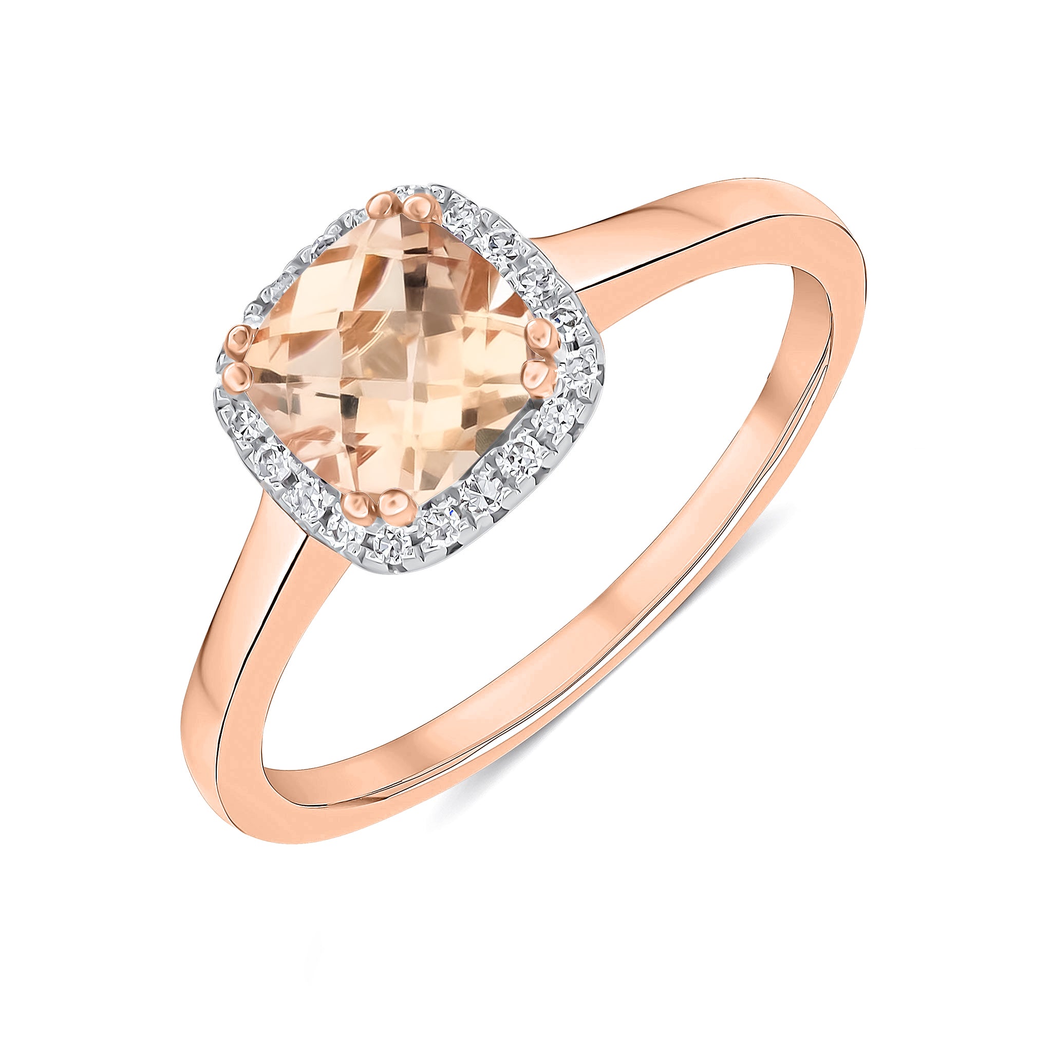 9CT Rose Gold Cushion Morganite & Diamond Cluster Ring 6mm