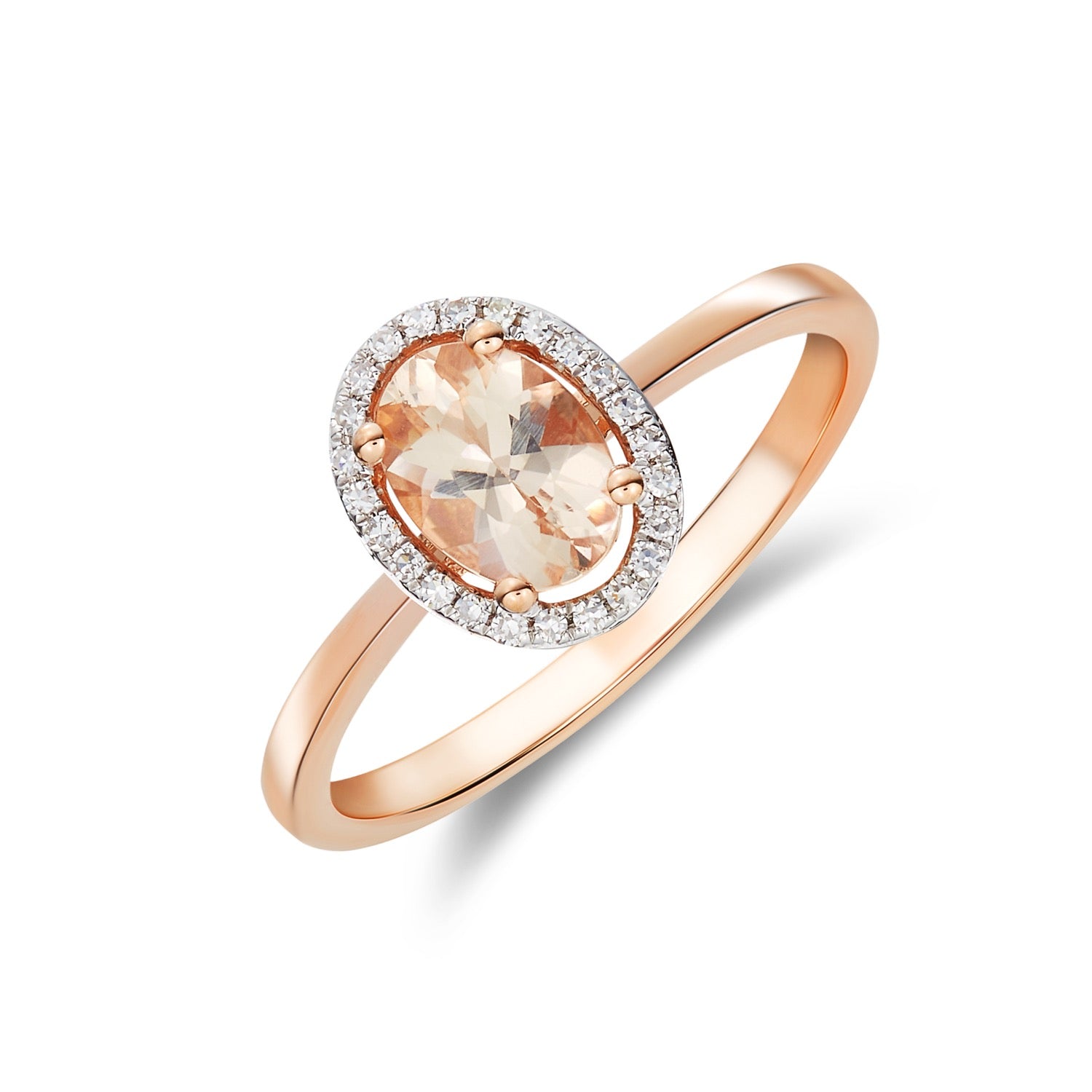 9CT Rose Gold Oval Morganite & Diamond Halo Cluster Ring 7x5mm