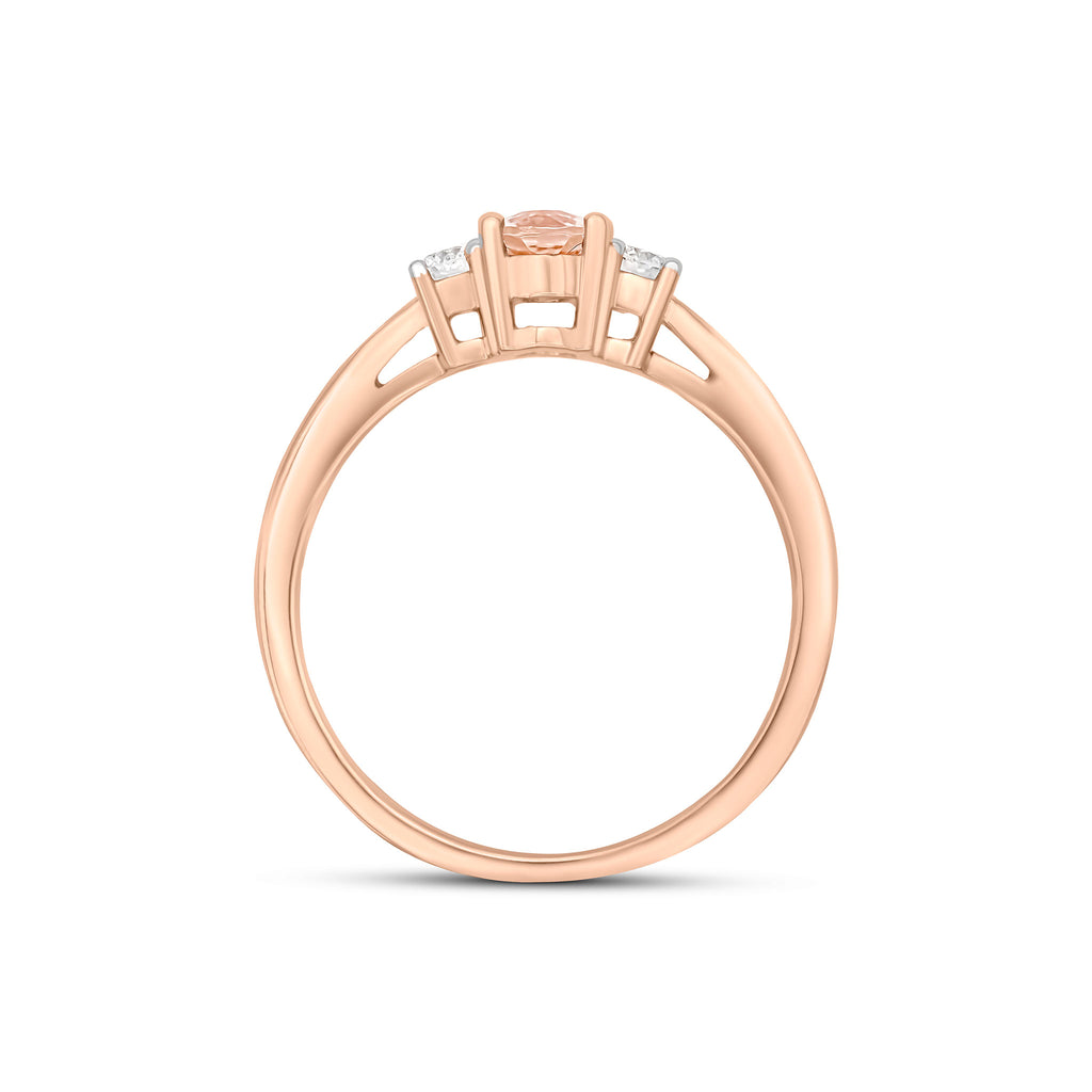 9CT Rose Gold Oval Morganite & Round Diamond Claw Set 3 Stone Ring
