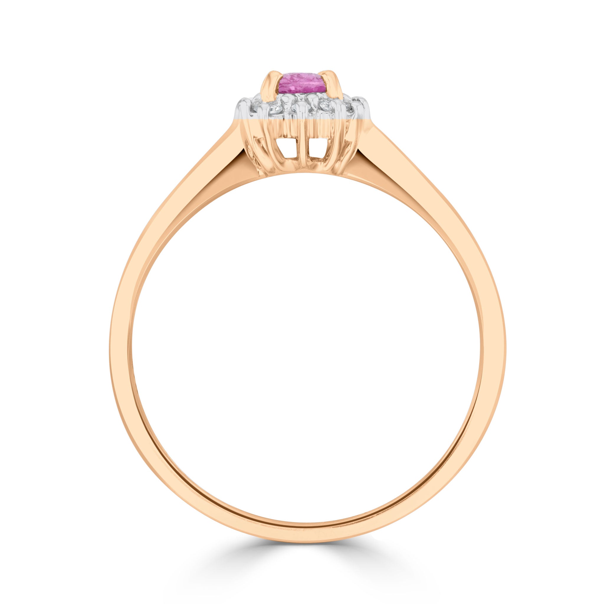 9CT Rose Gold Oval Pink Sapphire & Diamond Cluster Ring 5x3mm