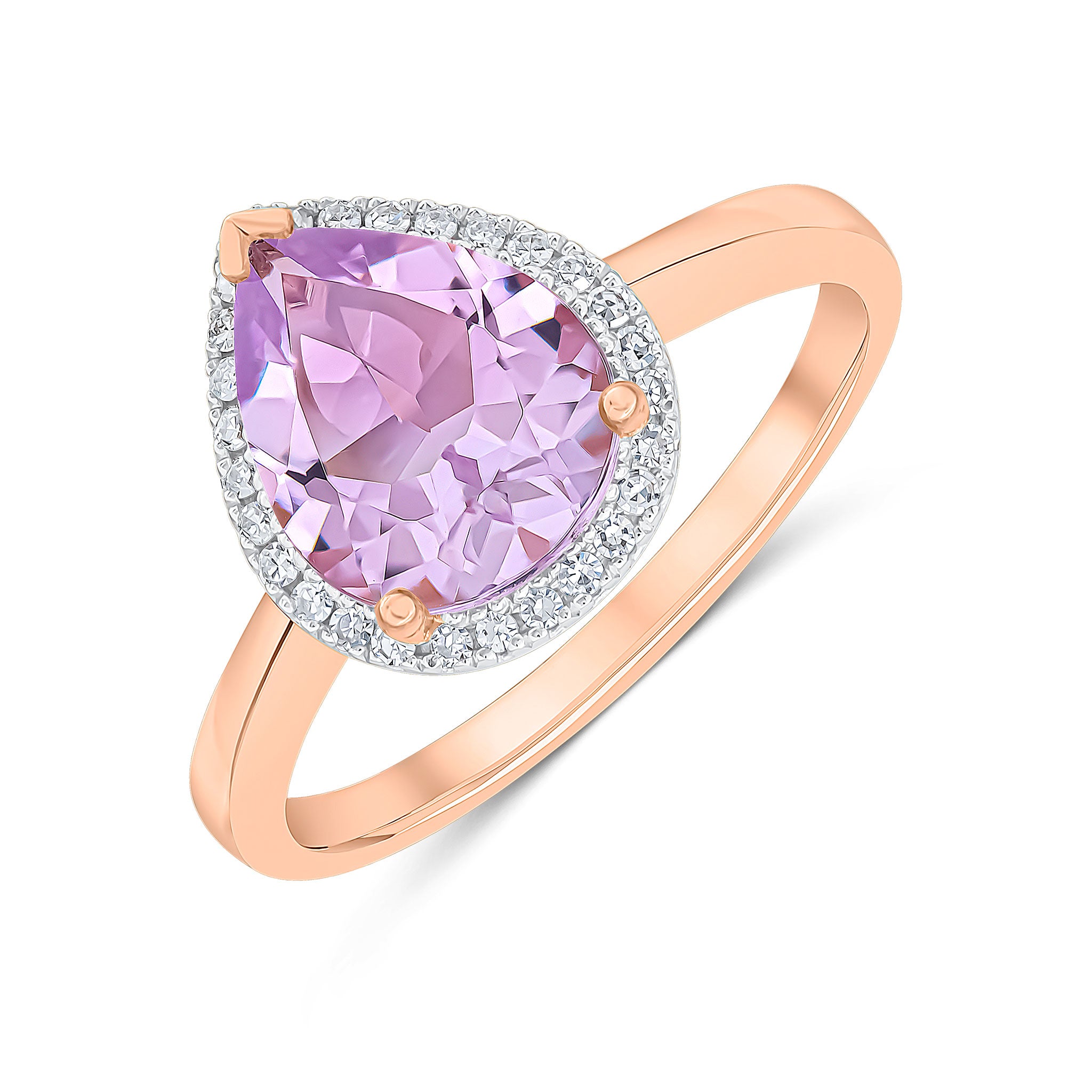 9CT Rose Gold Pear Shaped Pink Amethyst & Diamond Cluster Ring 10x8mm