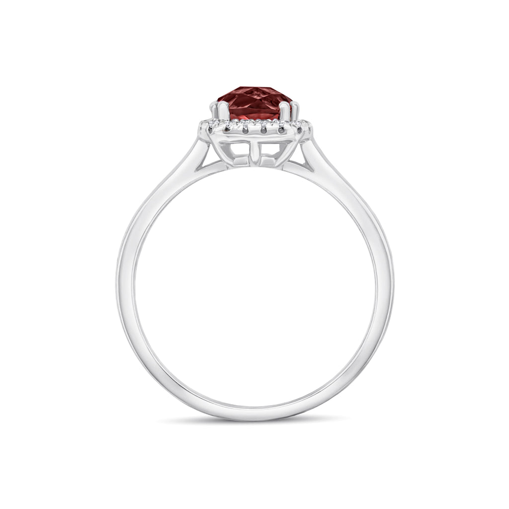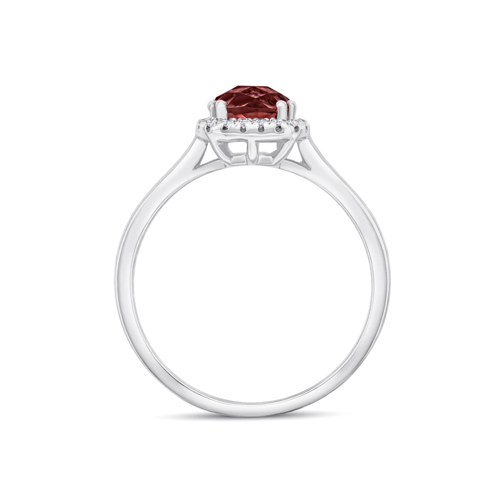 9CT White Gold Checkerboard Cut Cushion Garnet & Diamond Cluster Ring 6mm