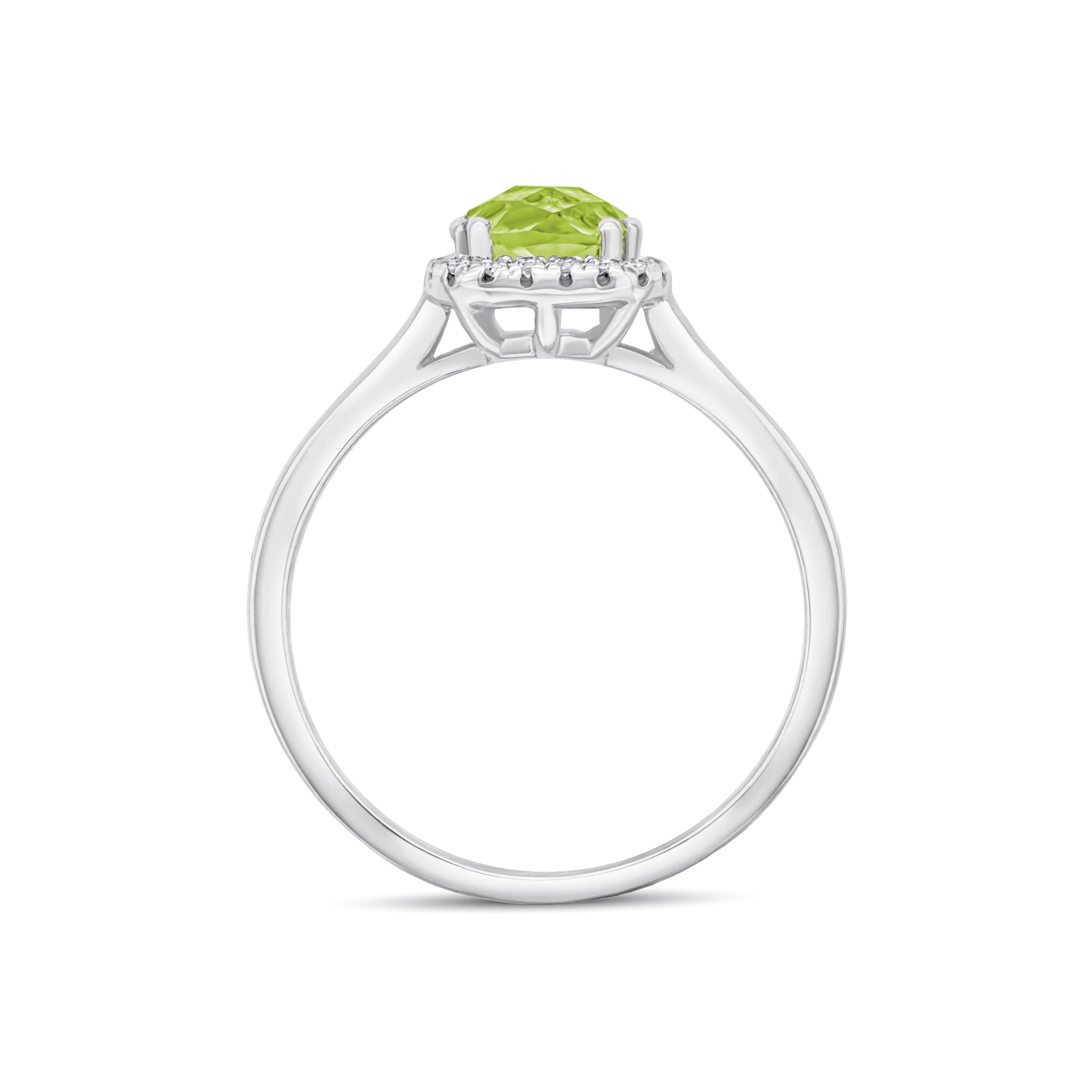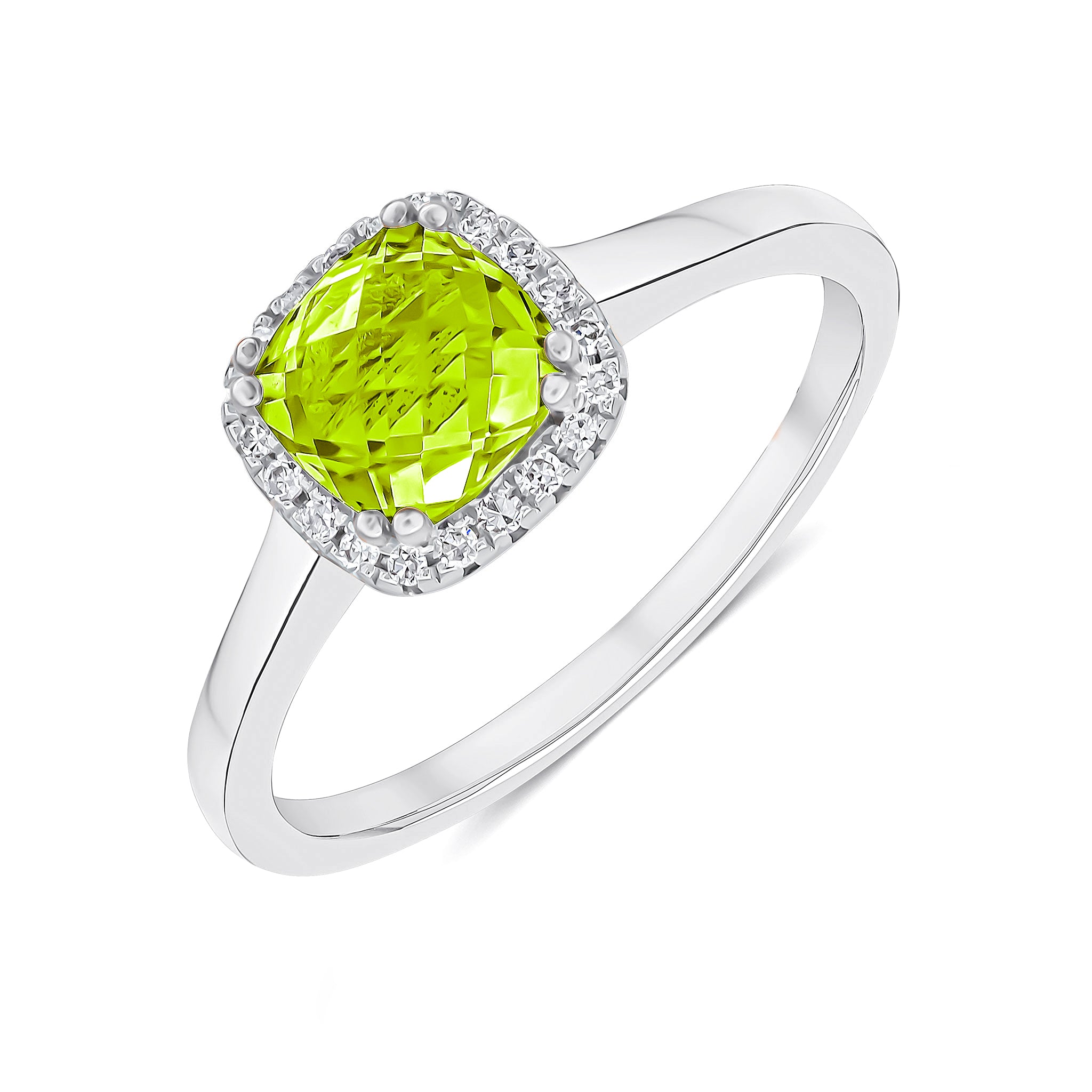 9CT White Gold Checkerboard Cut Cushion Peridot & Diamond Cluster Ring 6mm