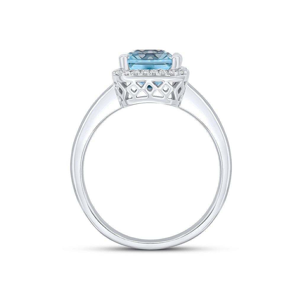 9CT White Gold Octagonal Aquamarine & Diamond Cluster Ring 9x7mm