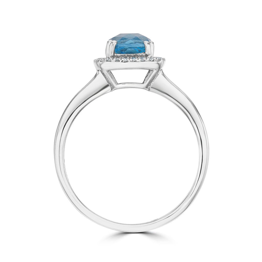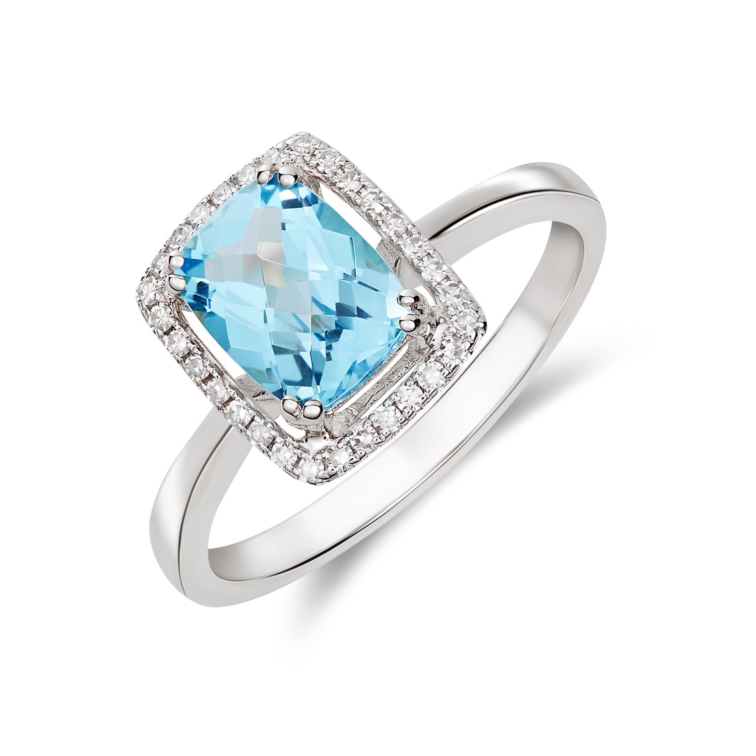 9CT White Gold Octagonal Cushion Swiss Blue Topaz & Diamond Cluster Ring 8x6mm