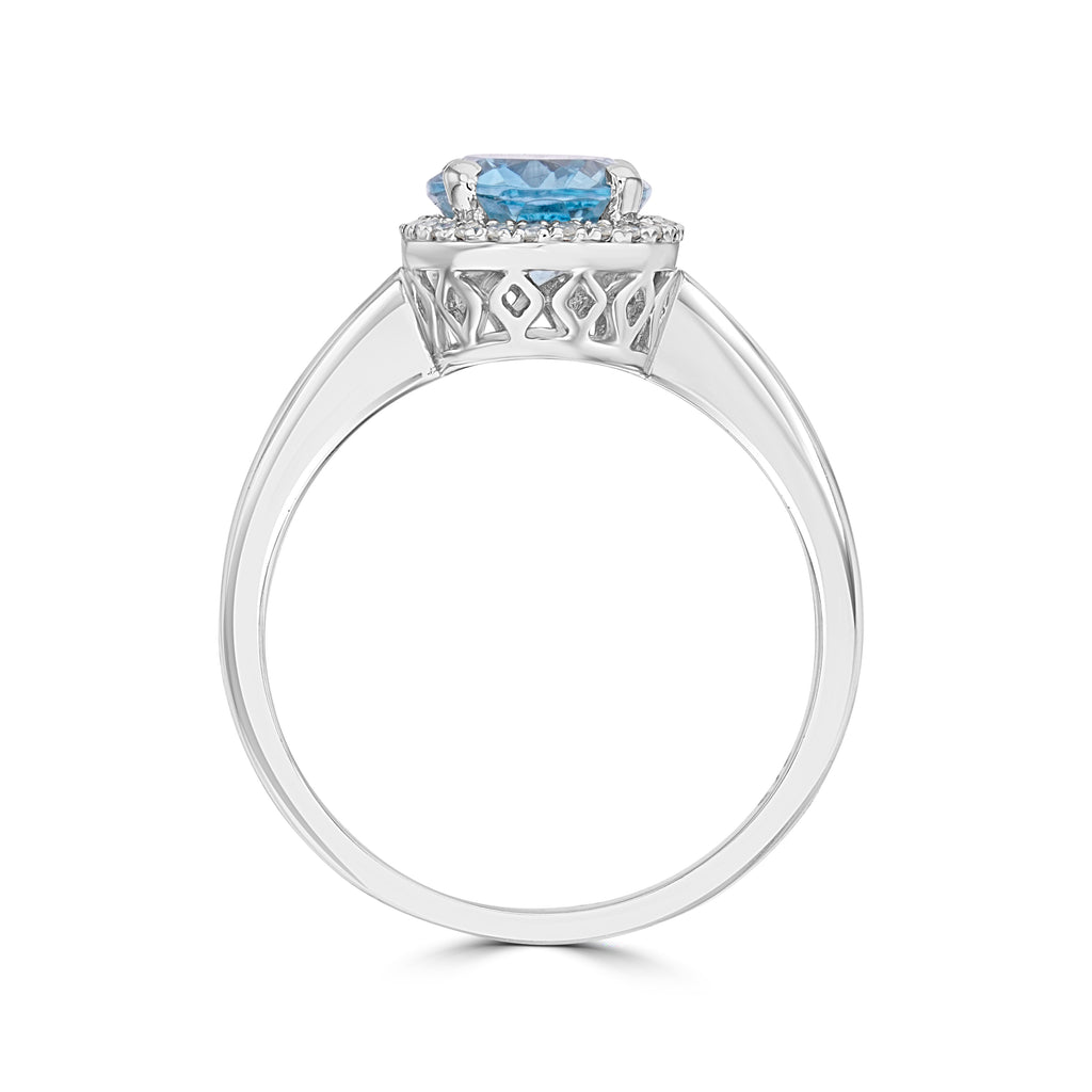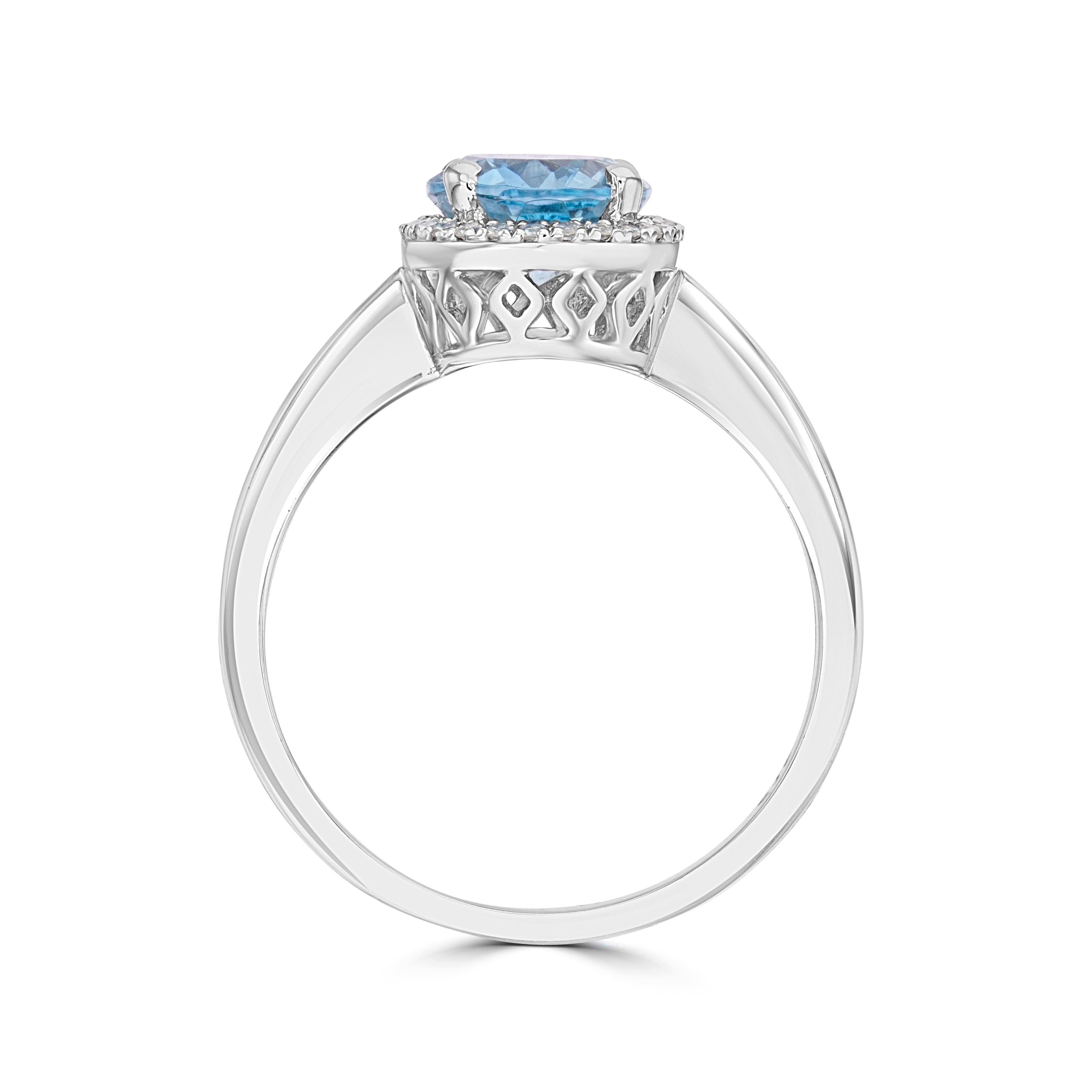9CT White Gold Oval Aquamarine & Diamond Cluster Ring 9x7mm