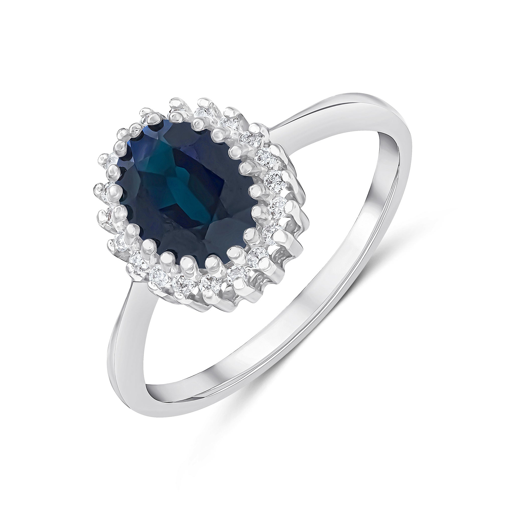 9CT White Gold Oval Blue Sapphire & Diamond Cluster Ring 8X6mm