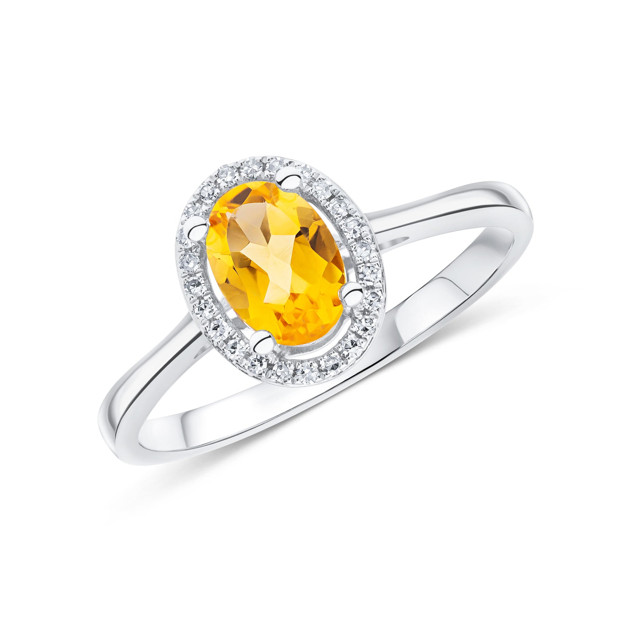 9CT White Gold Oval Citrine & Diamond Halo Cluster Ring 7x5mm