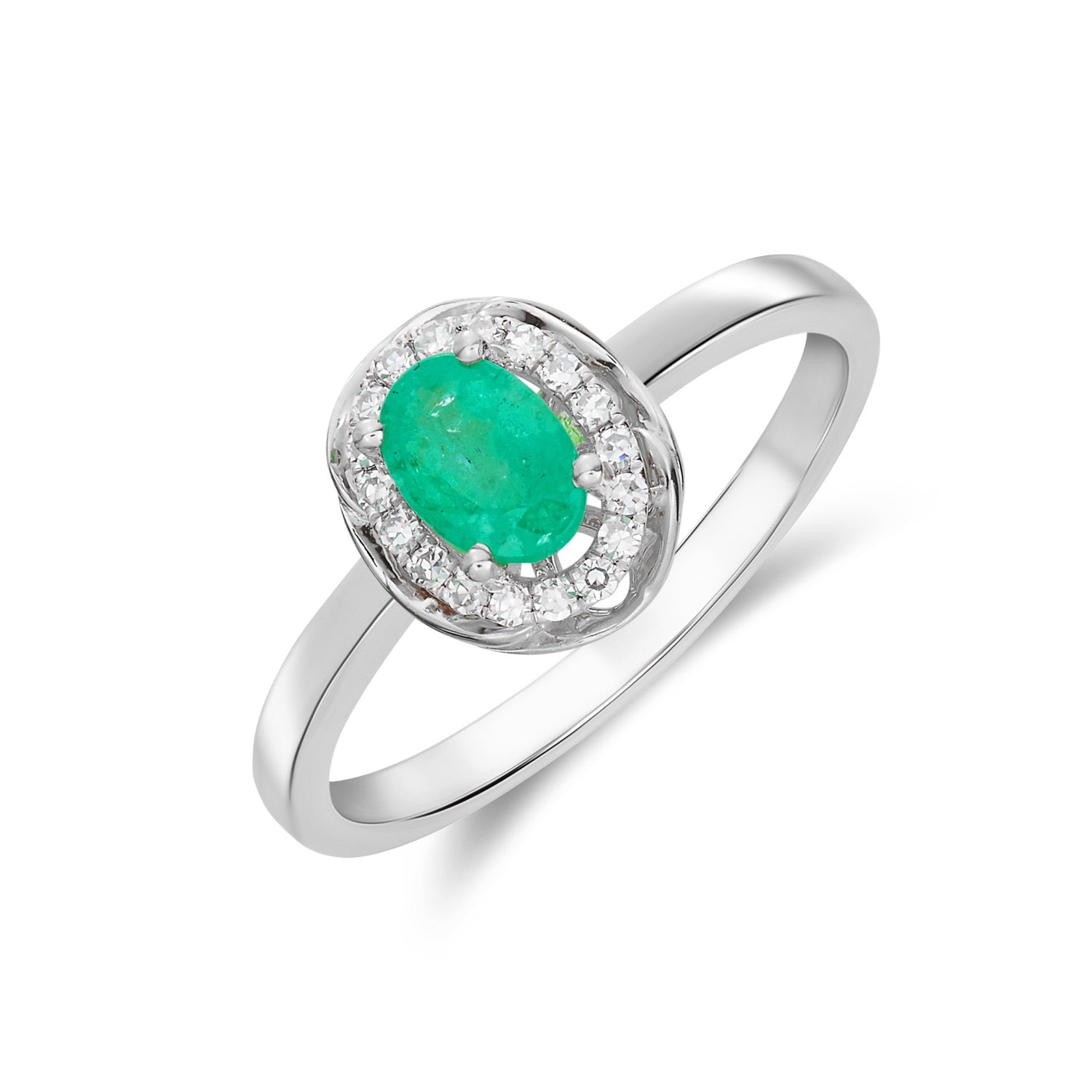 9CT White Gold Oval Emerald & Diamond Cluster Ring 6x4mm