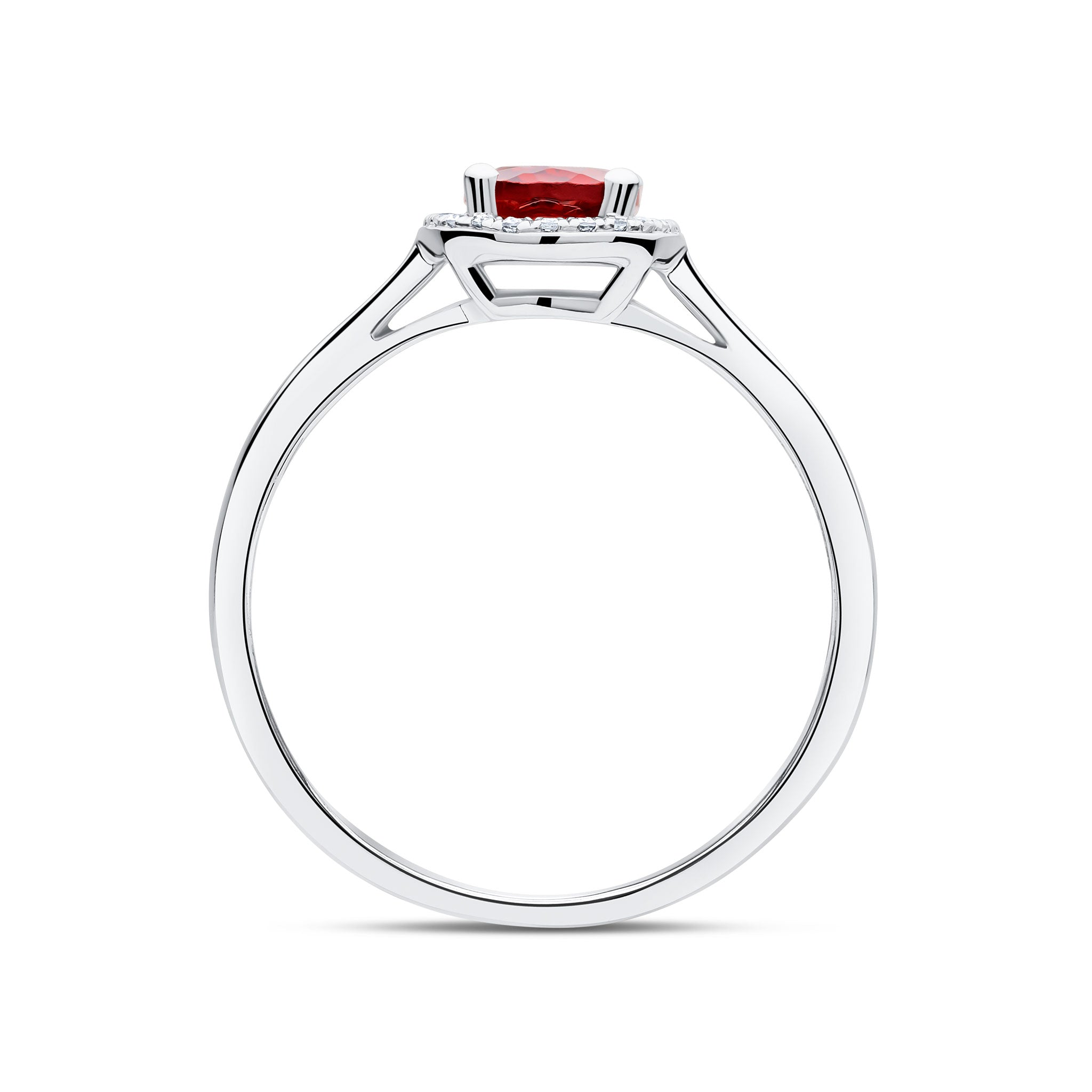 9CT White Gold Oval Garnet & Diamond Halo Cluster Ring 7x5mm