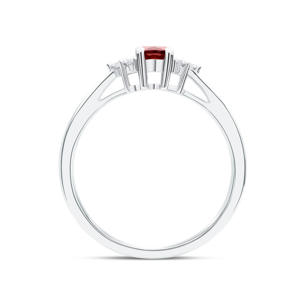 9CT White Gold Oval Garnet & Diamond Trefoil Ring 6x4mm