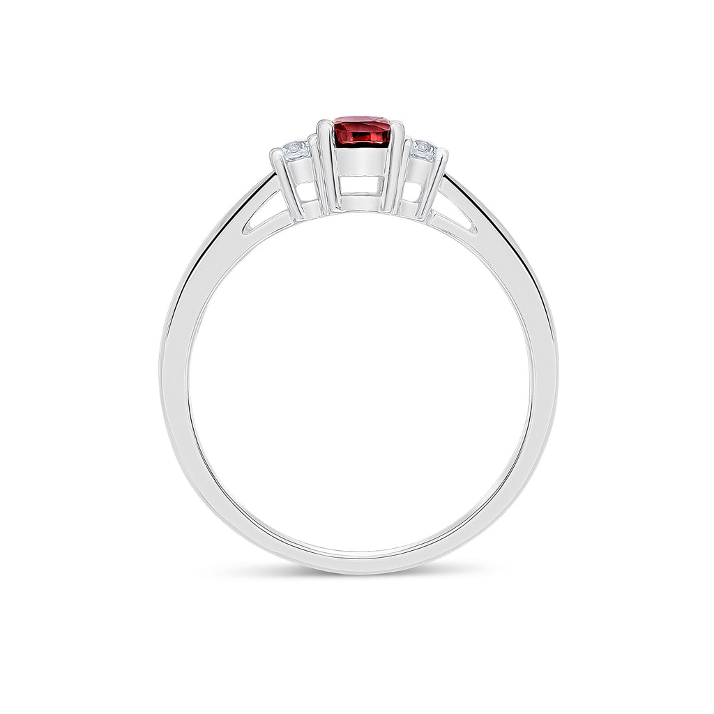 9CT White Gold Oval Garnet & Round Diamond Claw Three Stone Ring 6x4mm