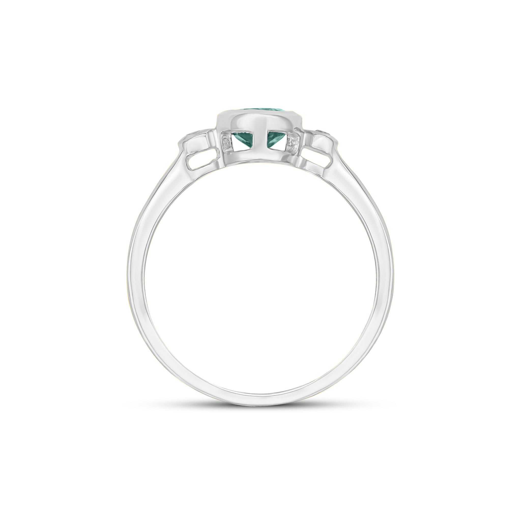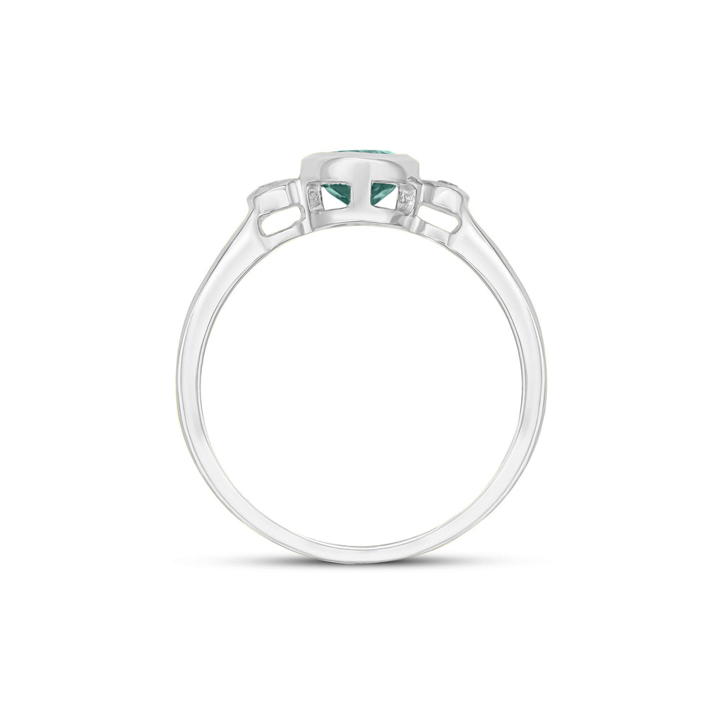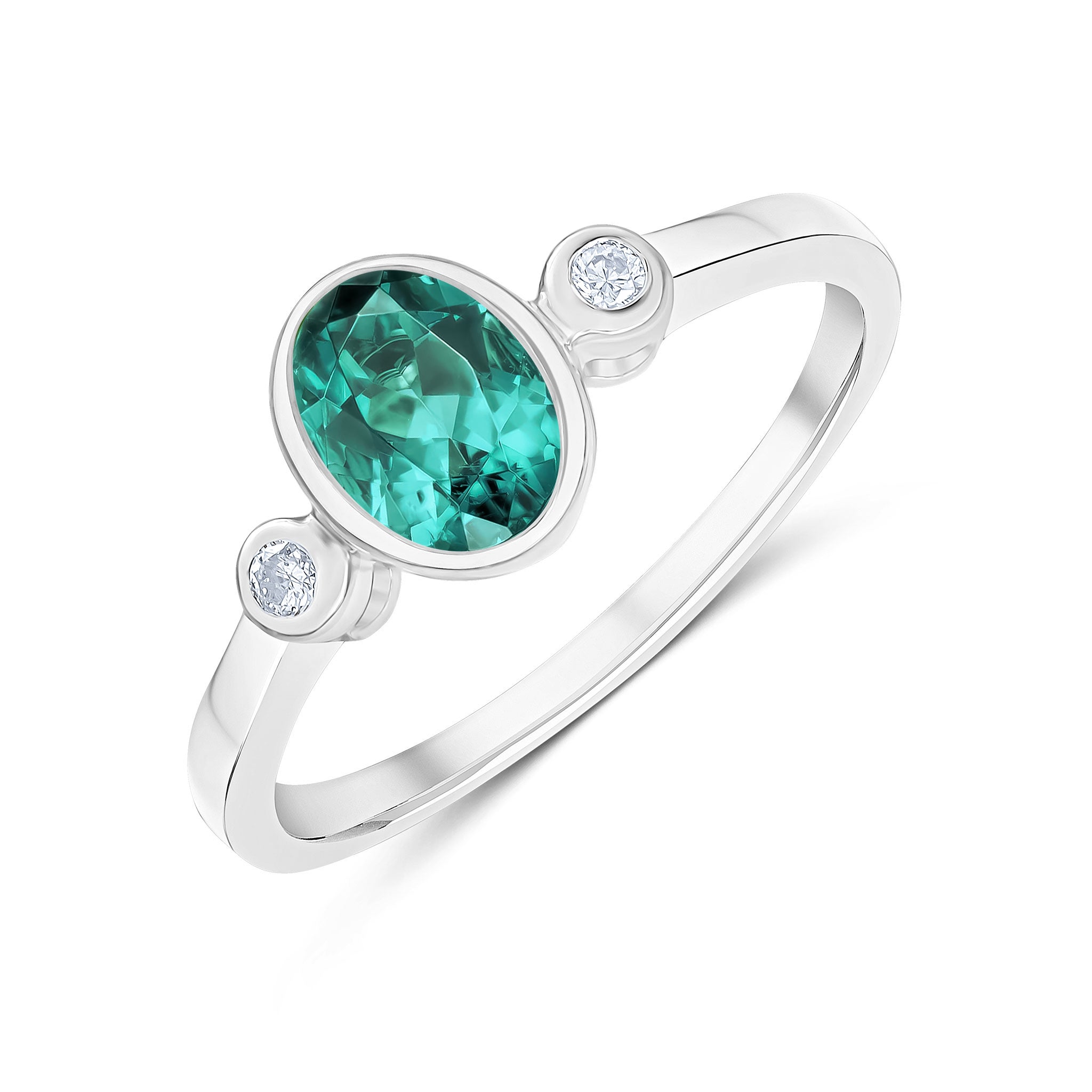 9CT White Gold Oval Green Tourmaline & Round Diamond Three Stone Rubover Ring