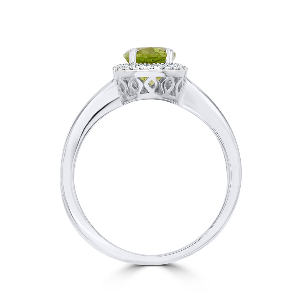 9CT White Gold Oval Peridot & Diamond Cluster Ring 8x6mm