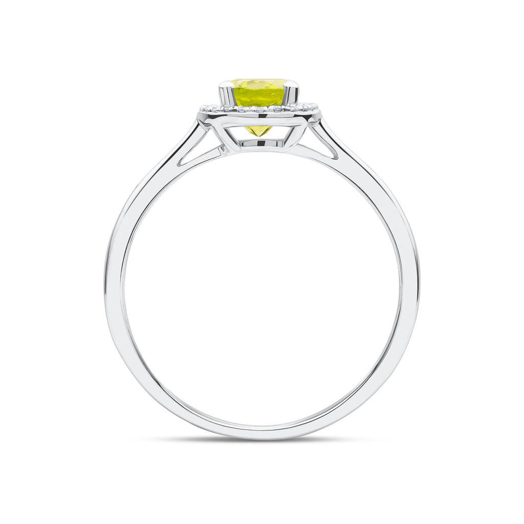 9CT White Gold Oval Peridot & Diamond Halo Cluster Ring 7x5mm