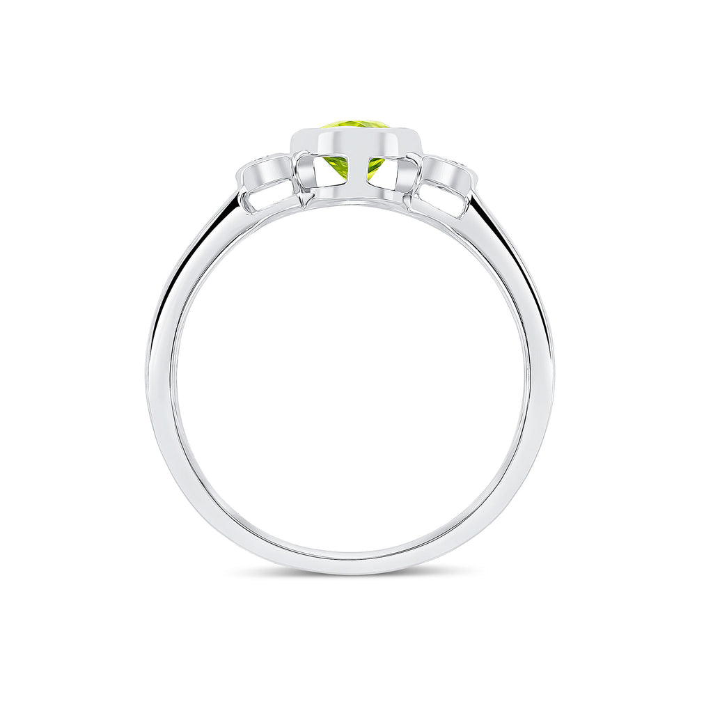 9CT White Gold Oval Peridot & Diamond Three Stone Rubover Ring