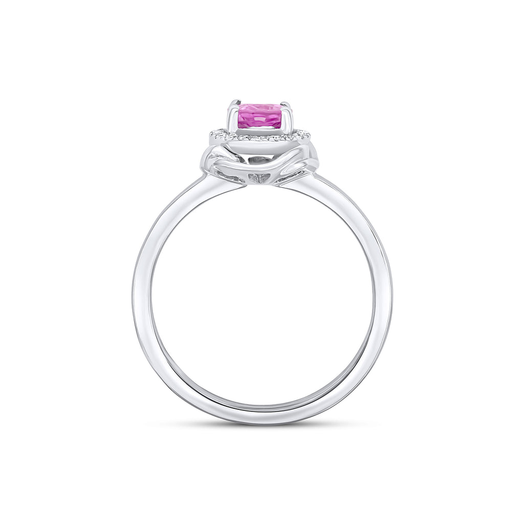 9CT White Gold Oval Pink Sapphire & Diamond Cluster Ring 7x5mm