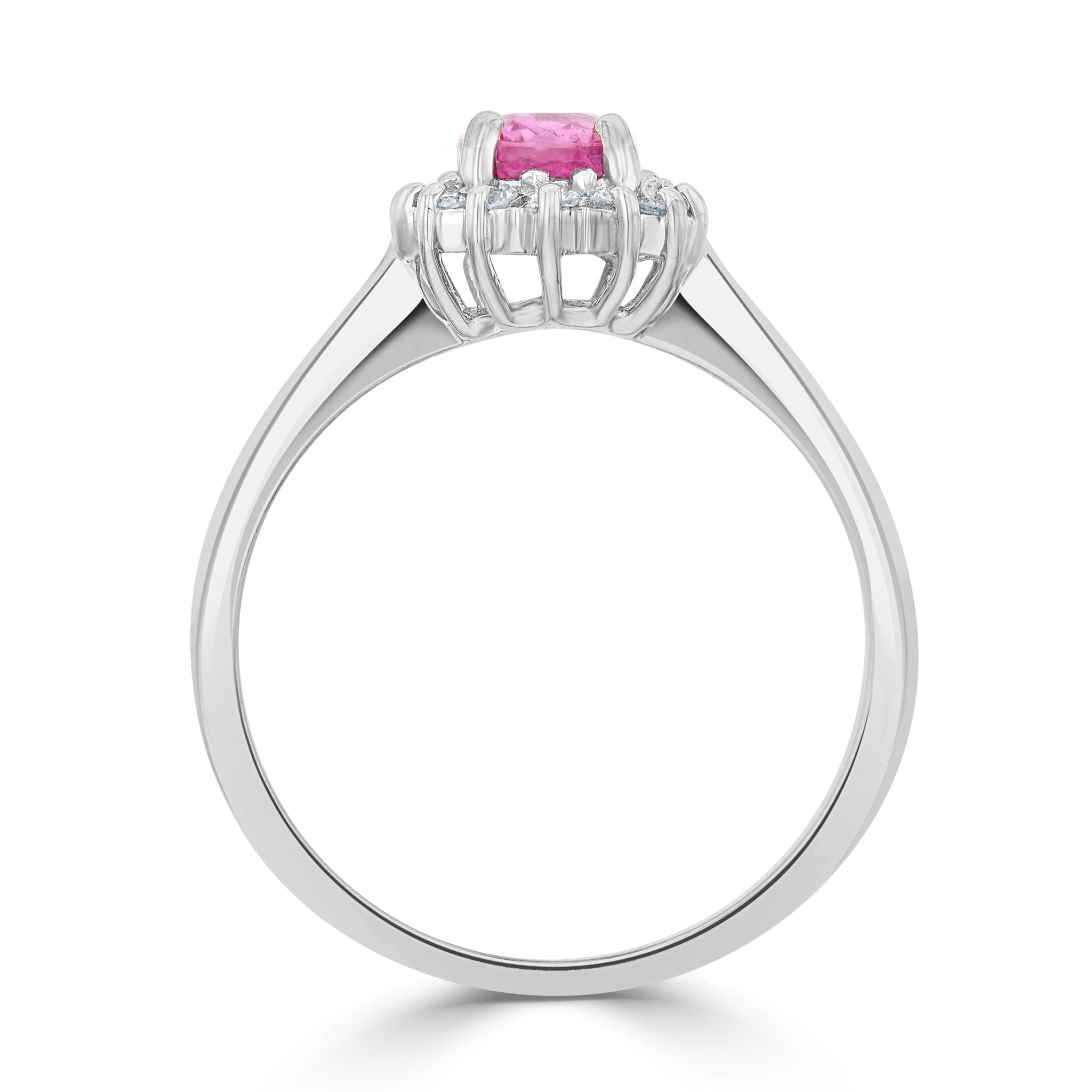 9CT White Gold Oval Pink Sapphire & Diamond Cluster Ring 7x5mm