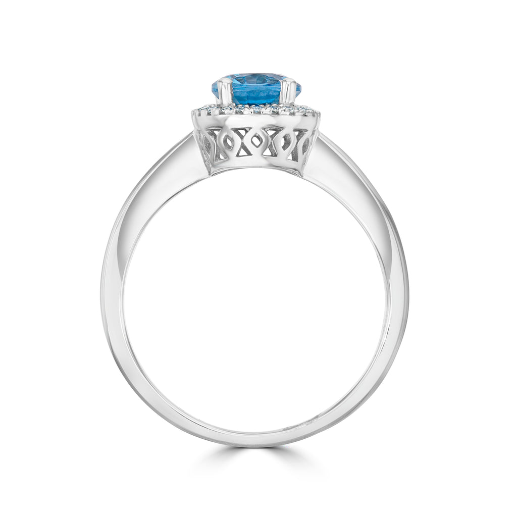9CT White Gold Oval Swiss Blue Topaz & Diamond Cluster Ring 8x6mm