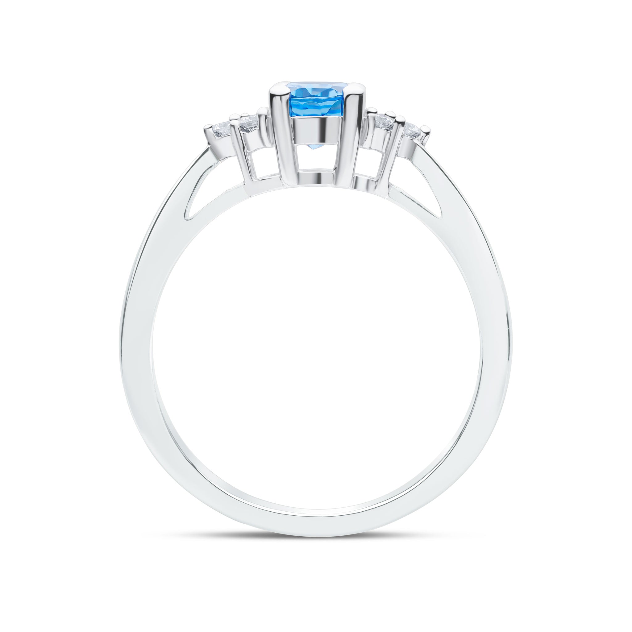 9CT White Gold Oval Swiss Blue Topaz & Diamond Trefoil Ring 7x5mm