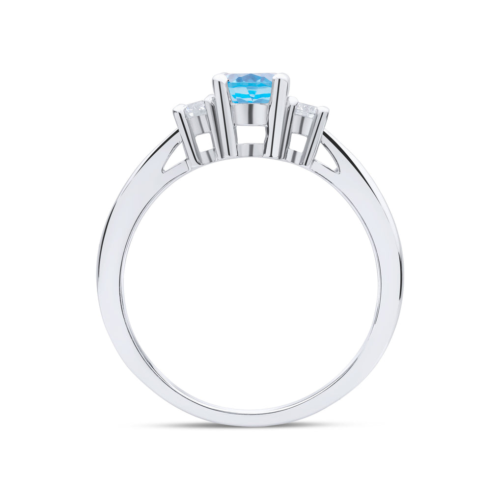 9CT White Gold Oval Swiss Blue Topaz & Round Diamond Claw Set Three Stone Ring 7x5mm