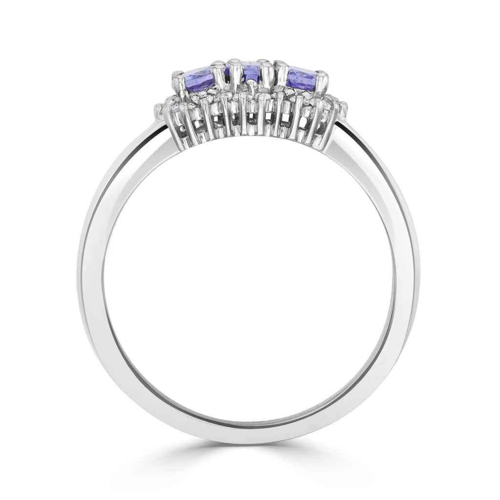 9CT White Gold Oval Tanzanite & Diamond Triple Cluster Ring