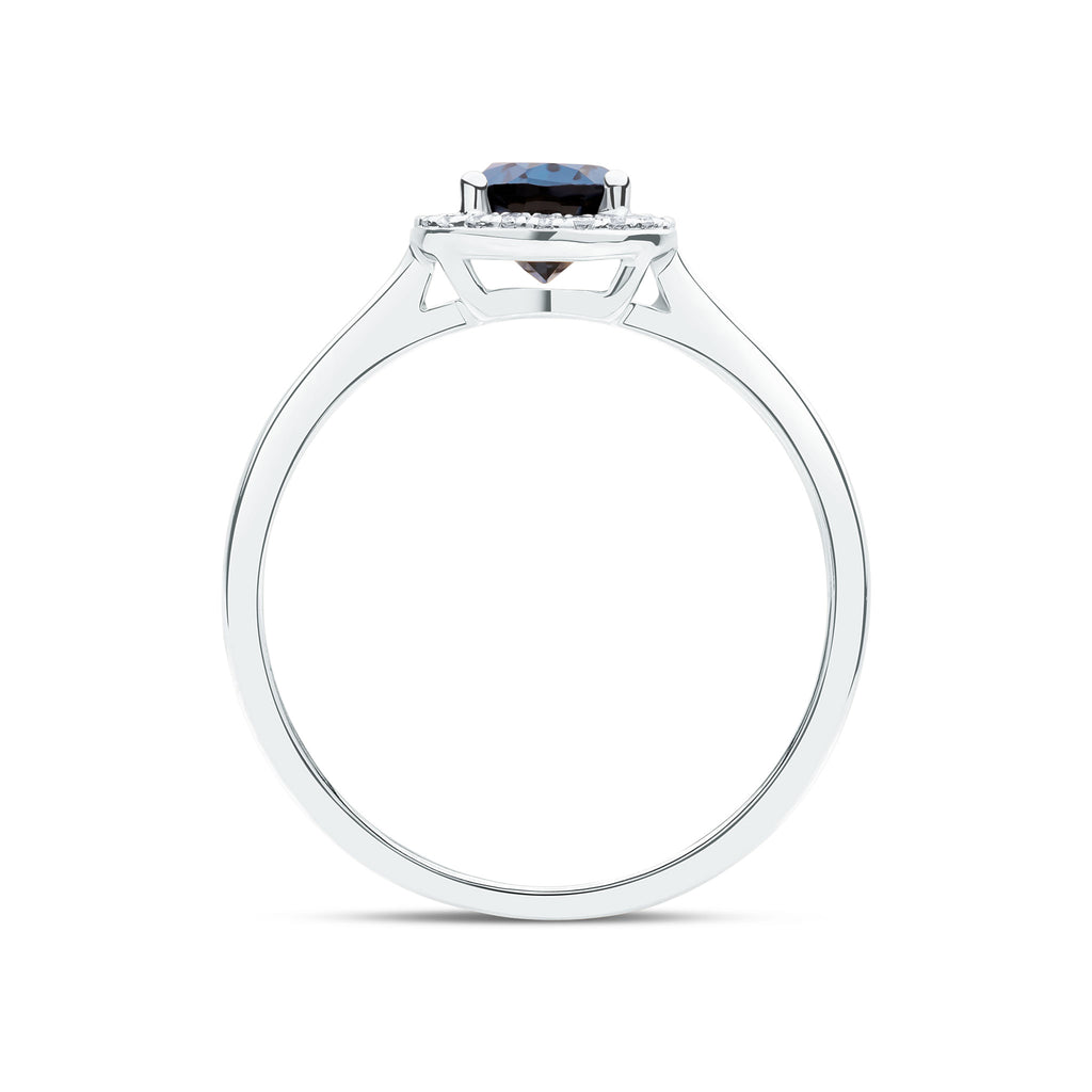 9CT White Gold Pear Shaped London Blue Topaz & Diamond Halo Cluster Ring 7x5mm