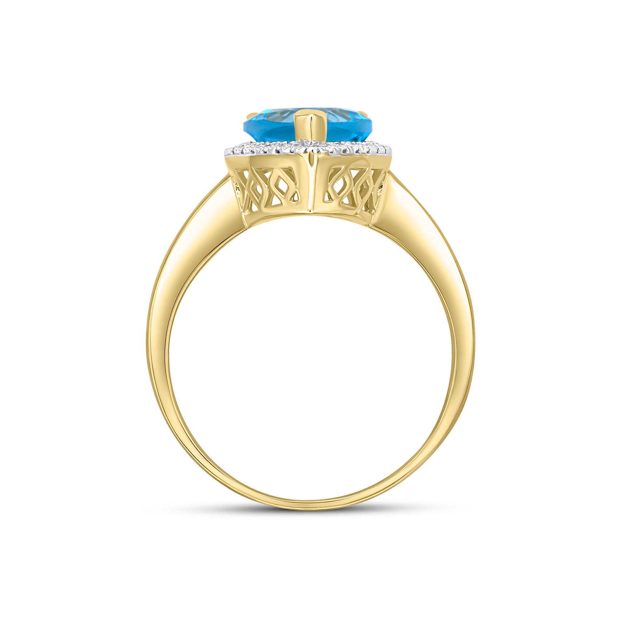 9CT Yellow Gold Pear Shaped Swiss Blue Topaz & Diamond Cluster Ring 10x8mm