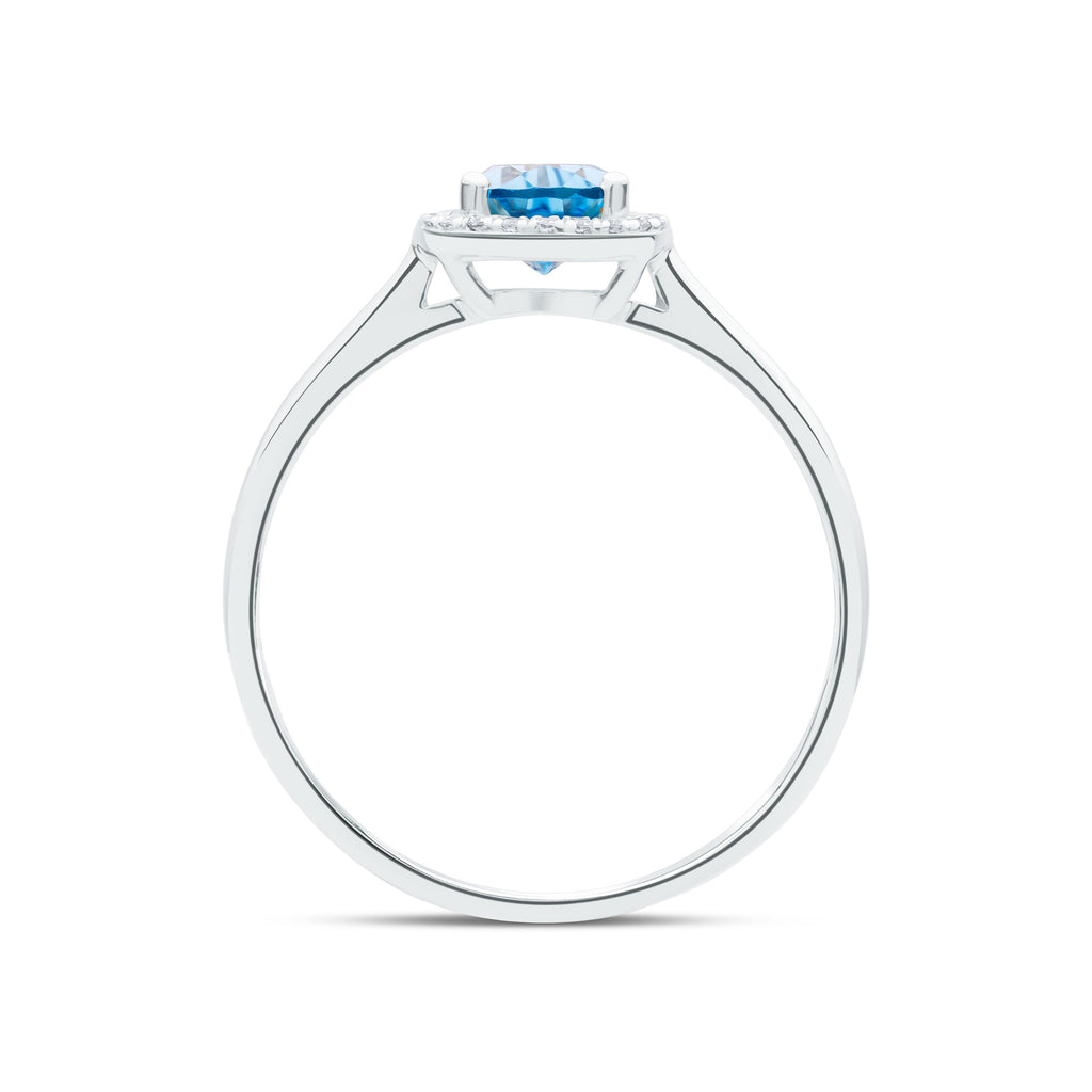 9CT White Gold Pear Shaped Swiss Blue Topaz & Diamond Halo Cluster Ring 7x5mm