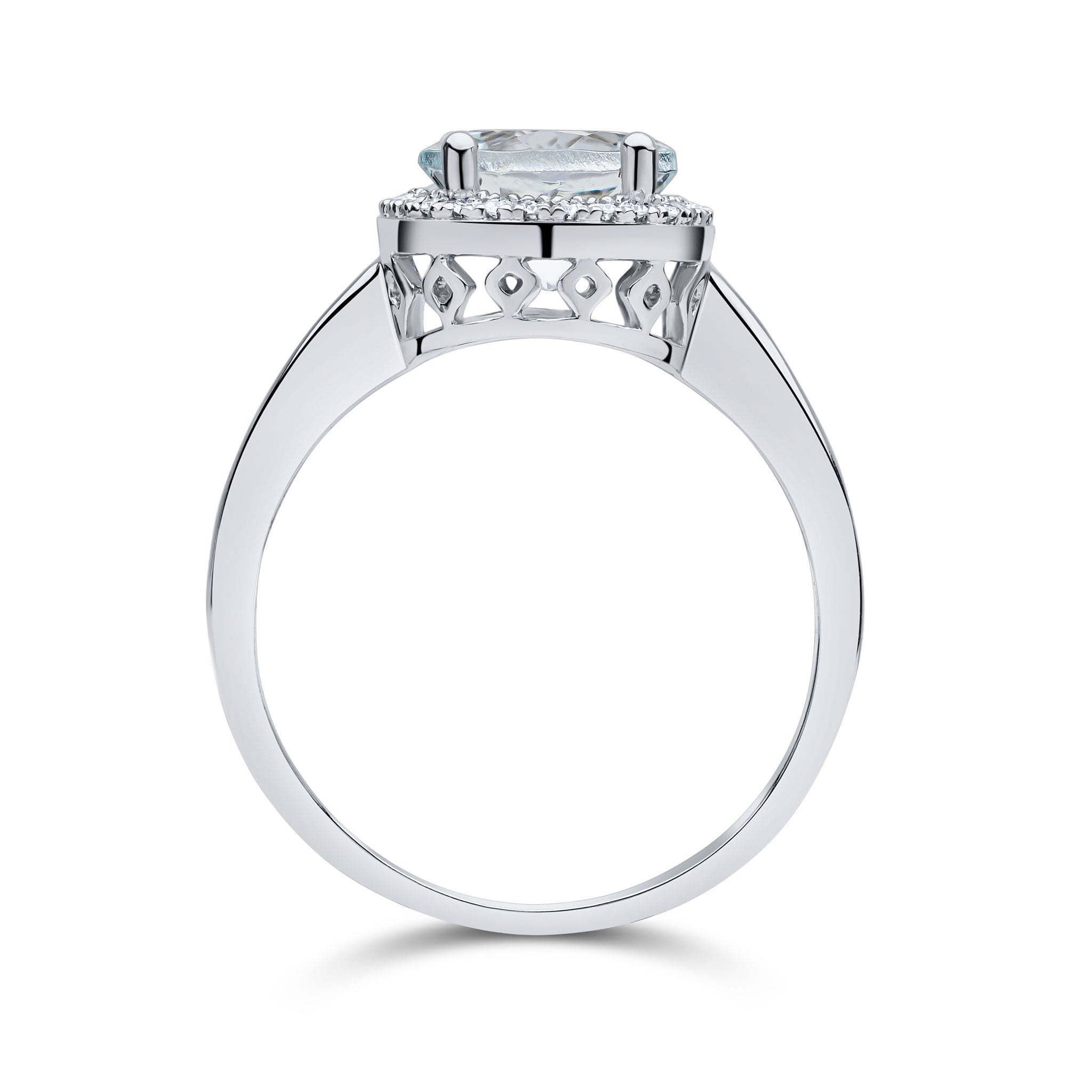9CT White Gold Round Aquamarine & Diamond Cluster Ring 8mm