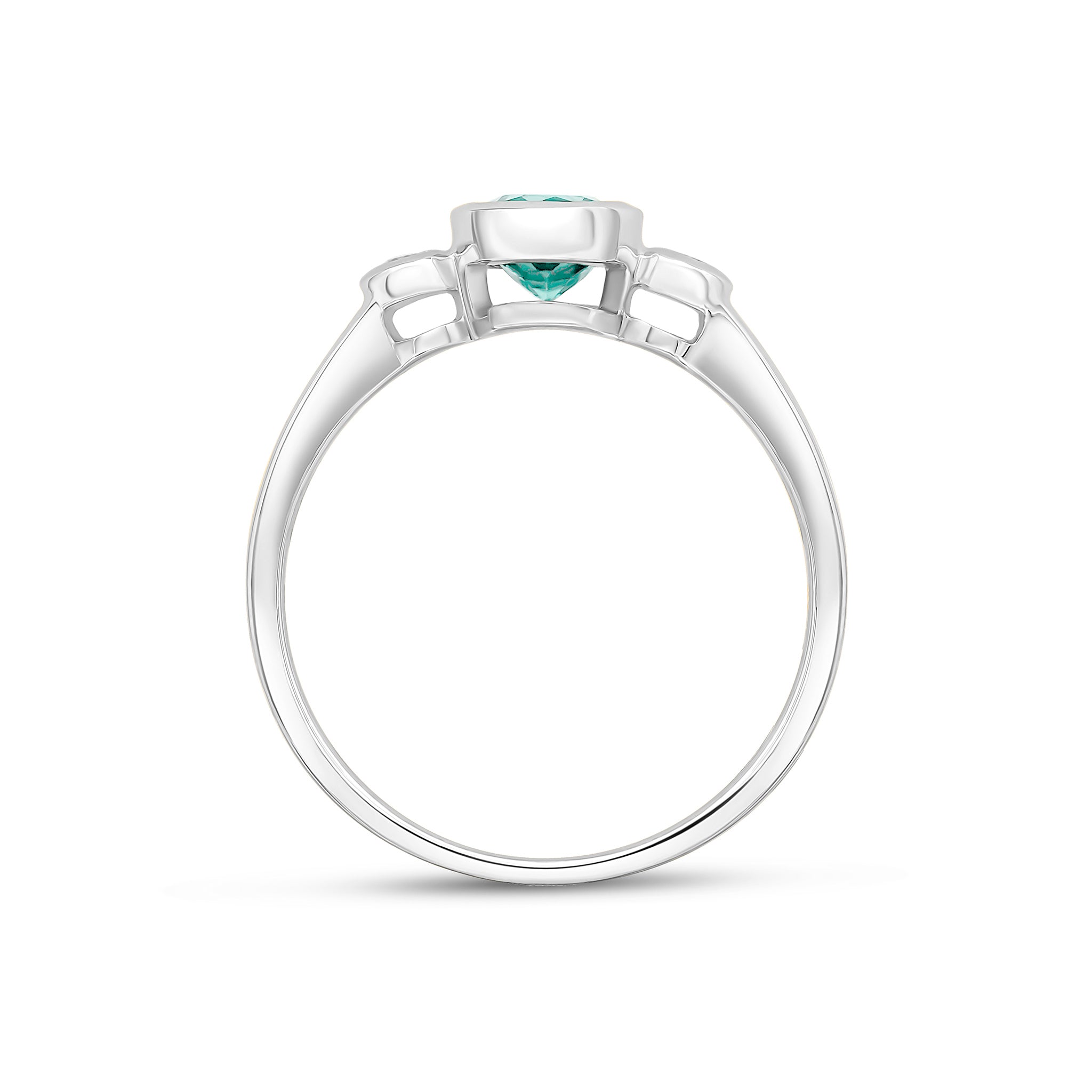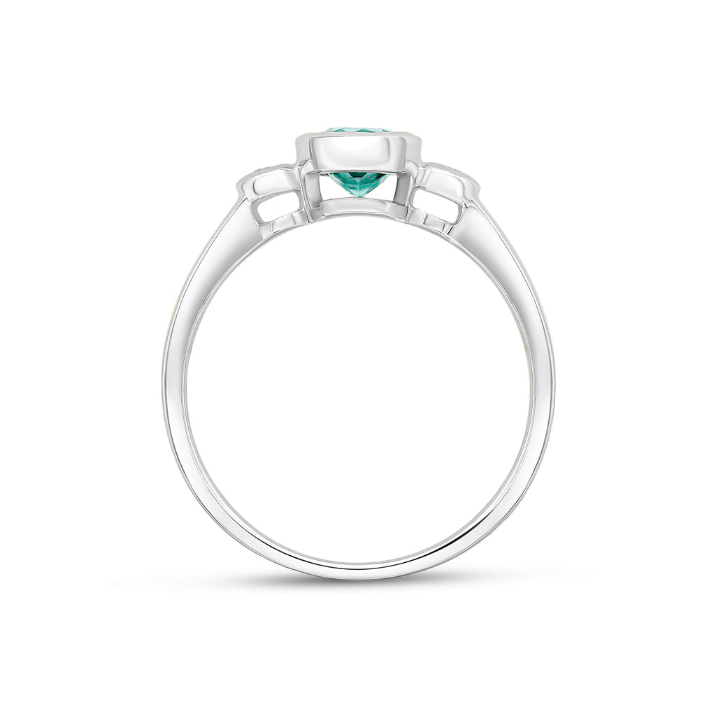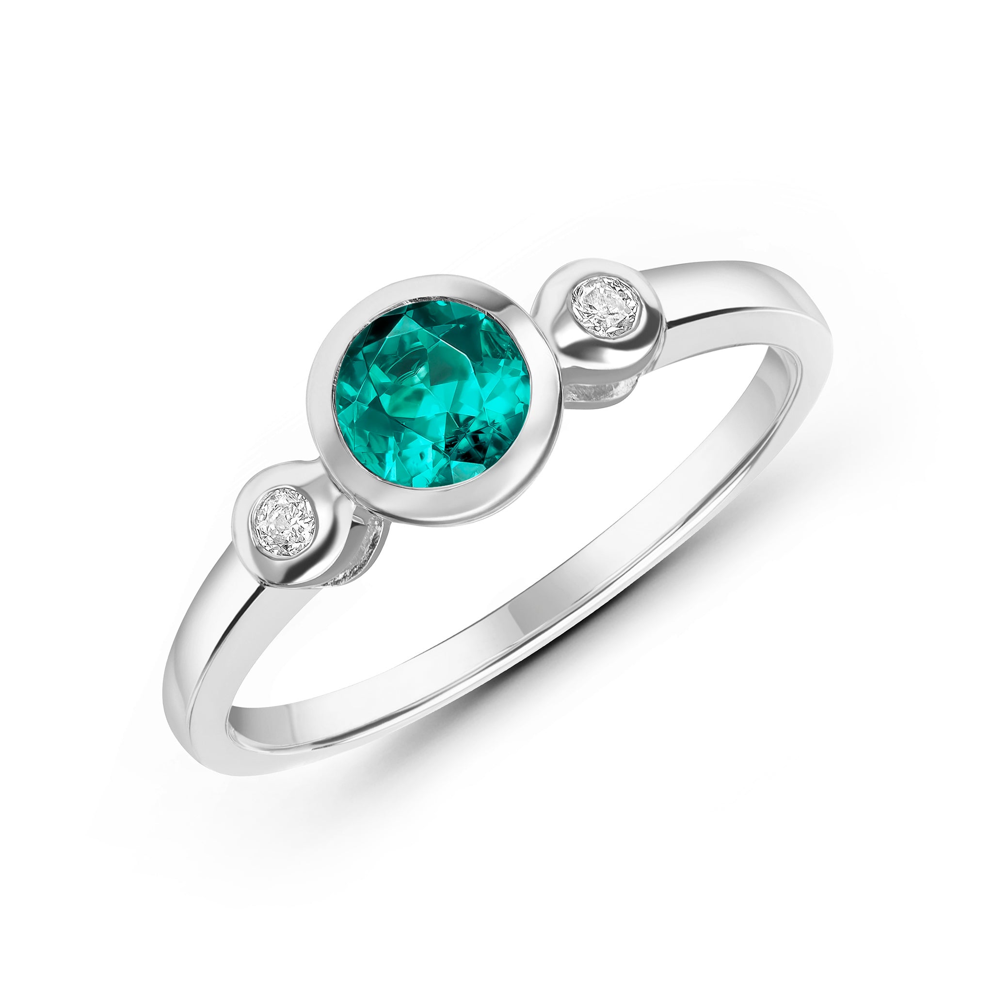 9CT White Gold Round Green Tourmaline & Diamond Three Stone Ring 5mm