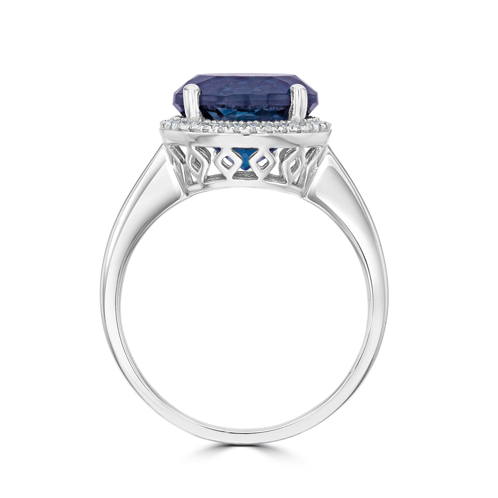 9CT White Gold Round London Blue Topaz & Diamond Cluster Ring 10mm