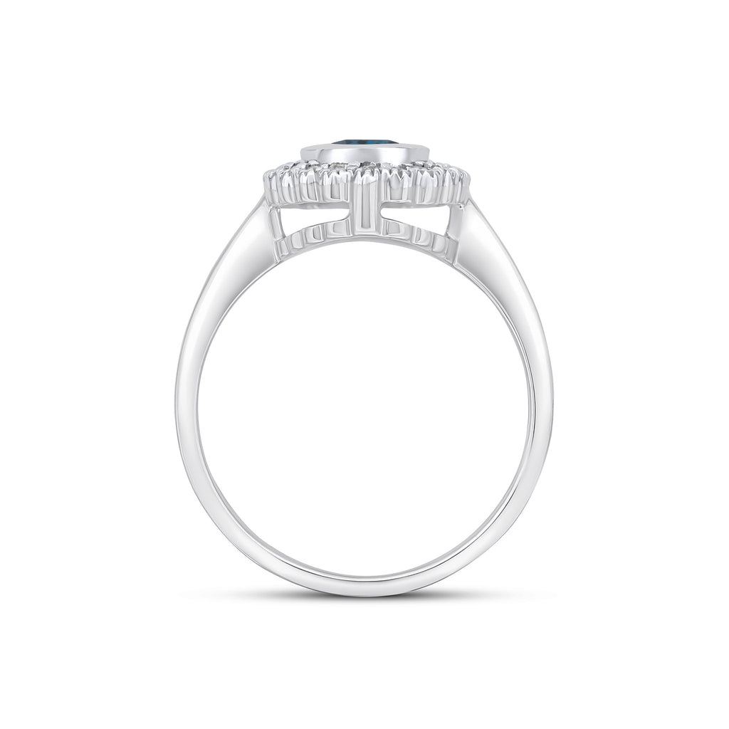 9CT White Gold Rubover Oval Swiss Blue Topaz & Millegrain Diamond Cluster Ring 7x5mm