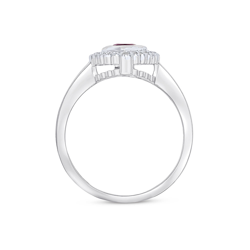 9CT White Gold Rubover Pear Shaped Ruby & Millegrain Diamond Cluster Ring 7x5mm