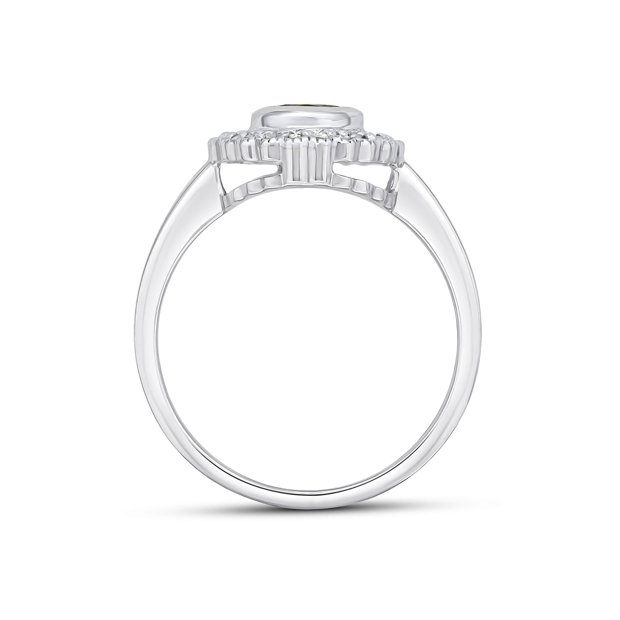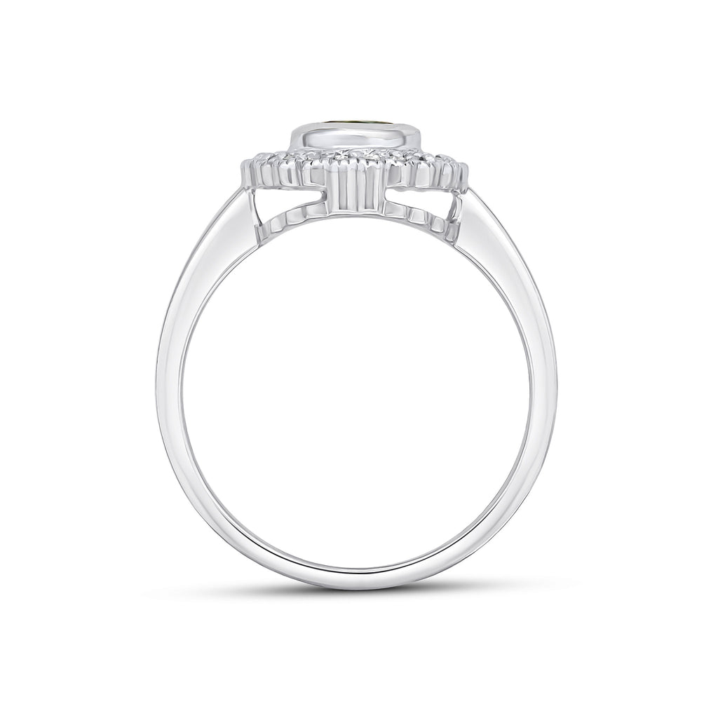 9CT White Gold Rubover Round Blue Sapphire & Millegrain Diamond Cluster Ring 5mm