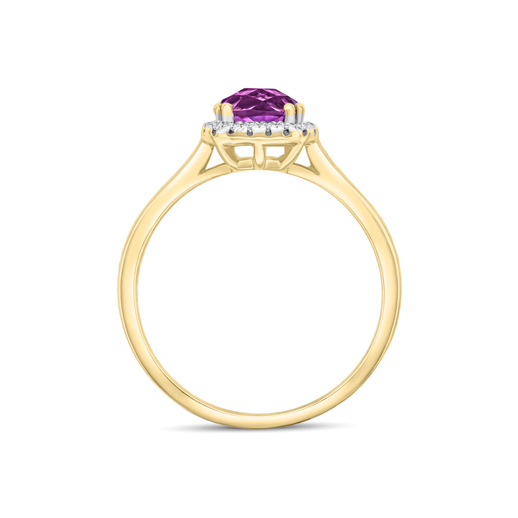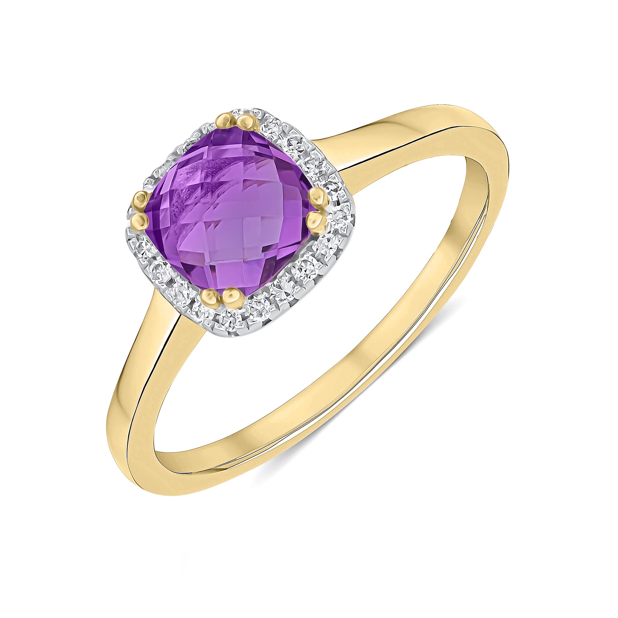 9CT Yellow Gold Checkerboard Cut Cushion Amethyst & Diamond Cluster Ring 6mm