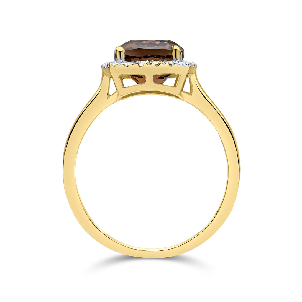 9CT Yellow Gold Cushion Smoky Quartz & Diamond Cluster Ring 8mm