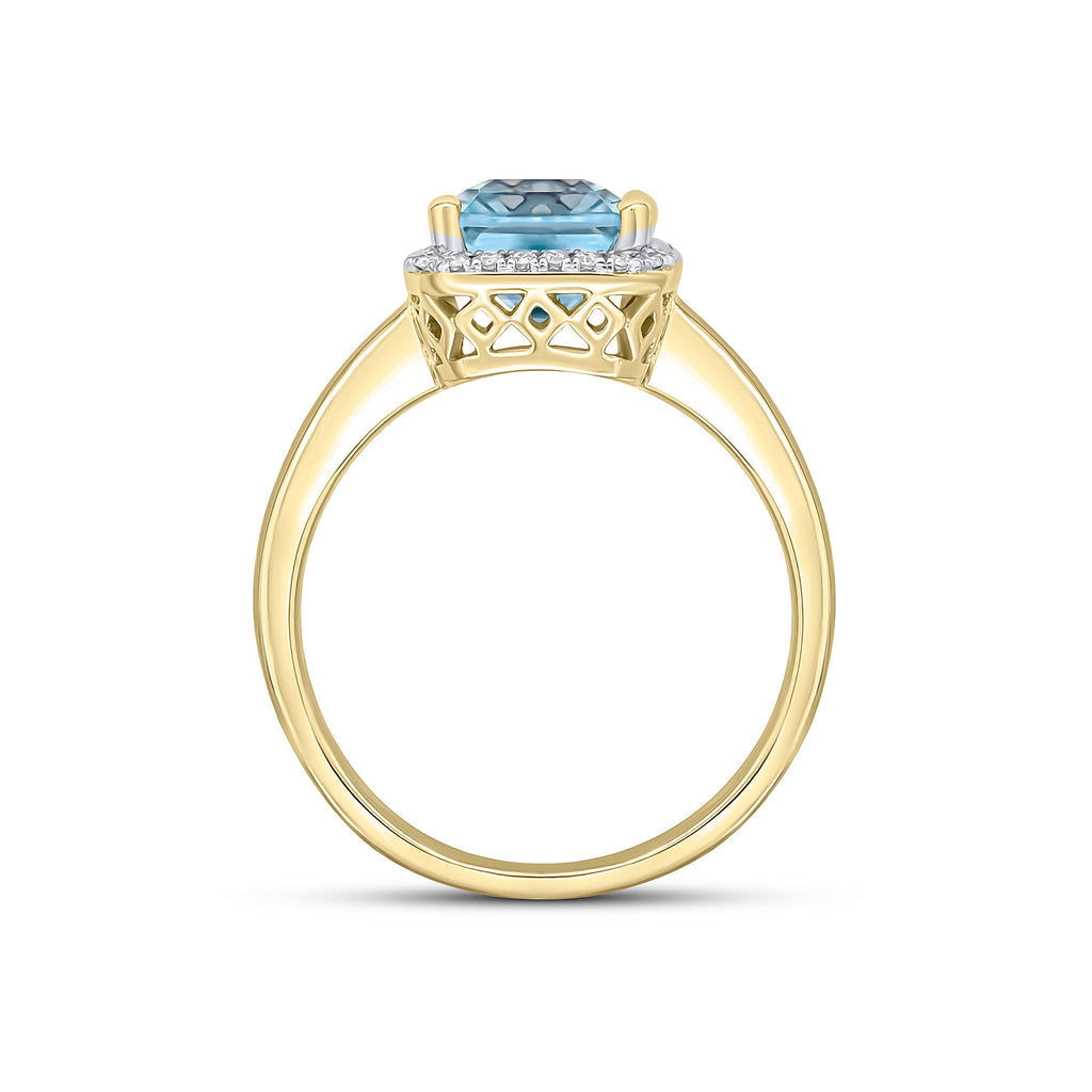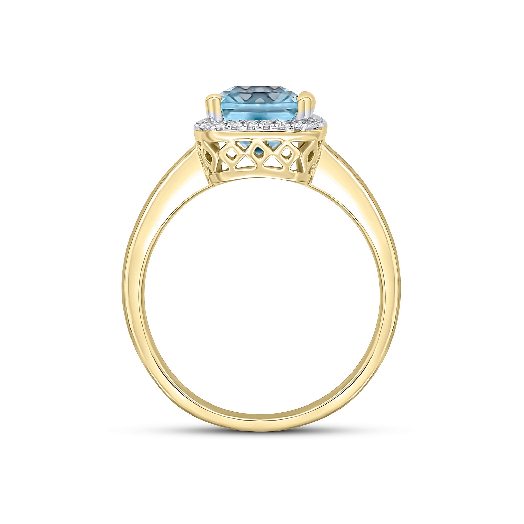 9CT Yellow Gold Octagonal Aquamarine & Diamond Cluster Ring 9x7mm