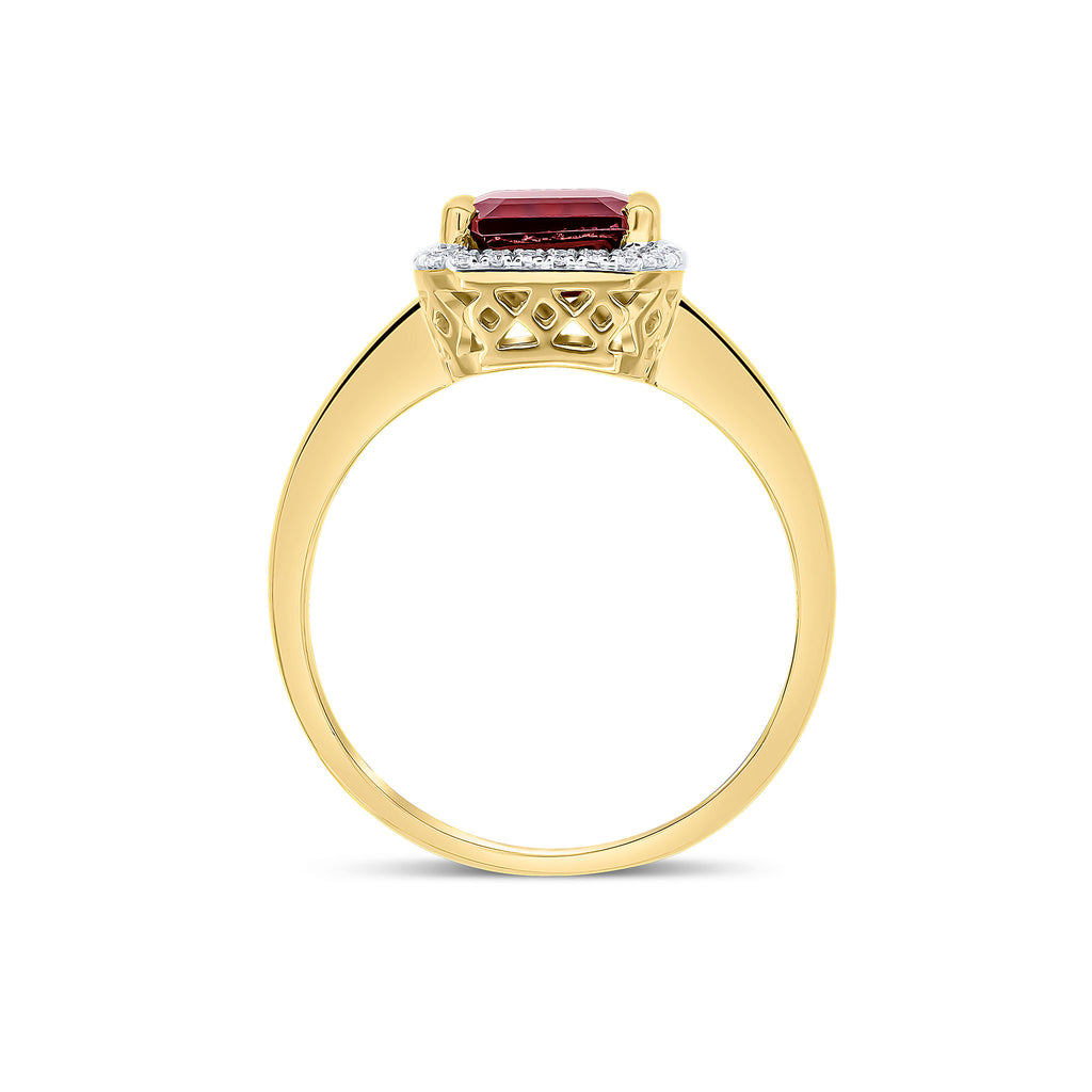 9CT Yellow Gold Octagonal Garnet & Diamond Cluster Ring 9x7mm