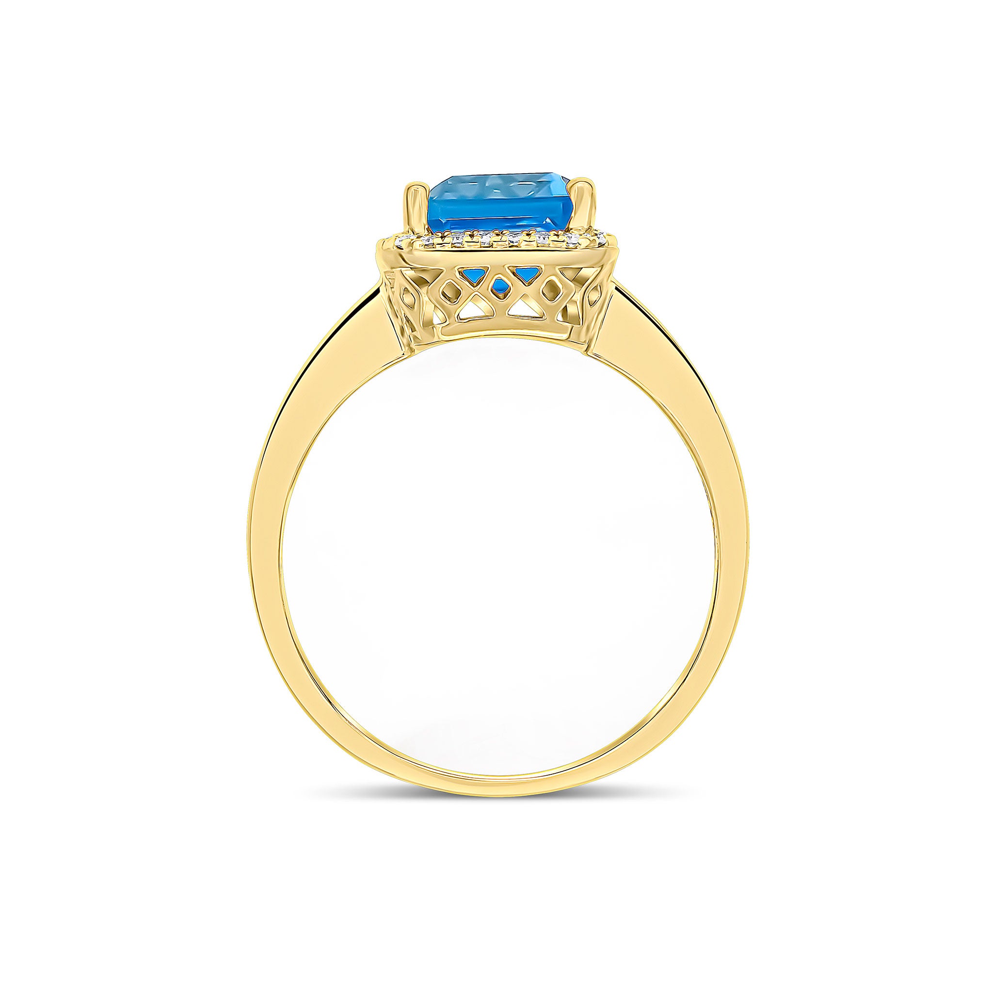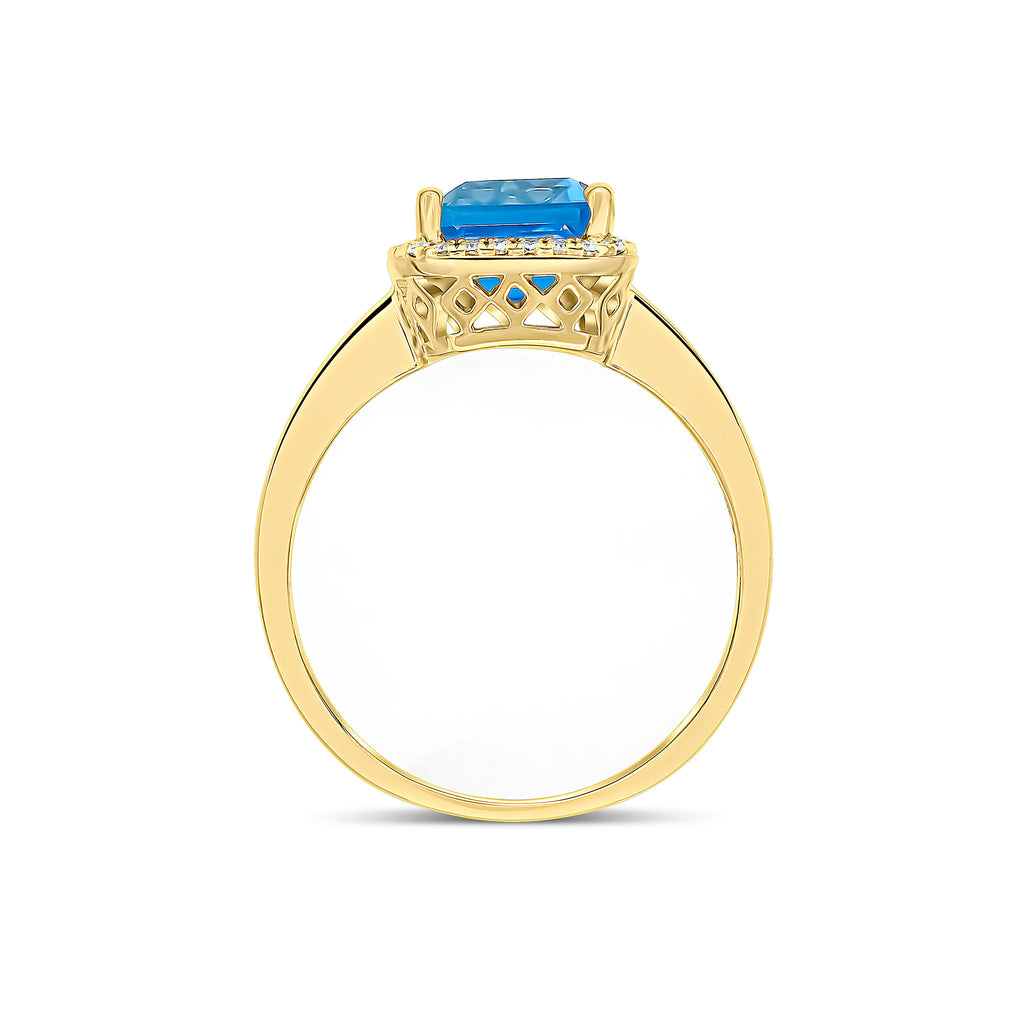 9CT Yellow Gold Octagonal Swiss Blue Topaz & Diamond Cluster Ring 9x7mm