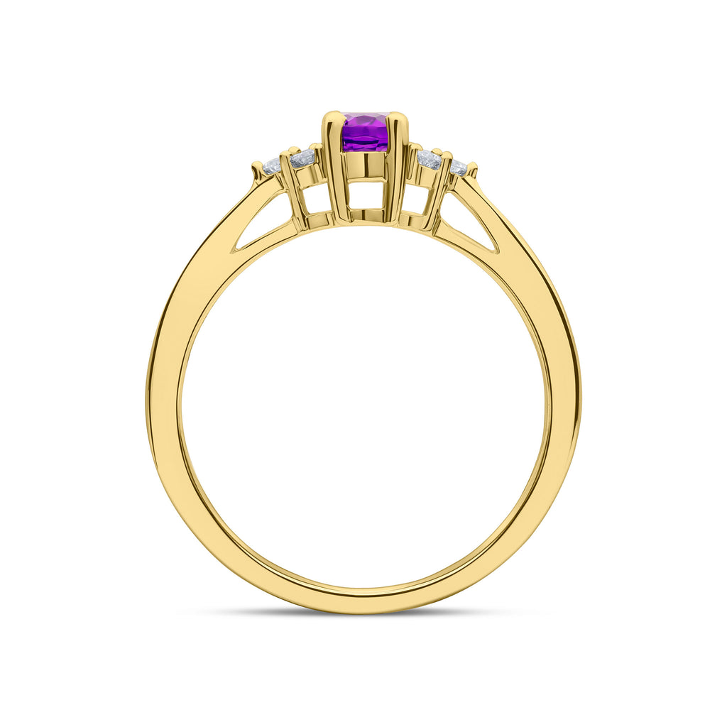 9CT Yellow Gold Oval Amethyst & Diamond Trefoil Ring 6x4mm