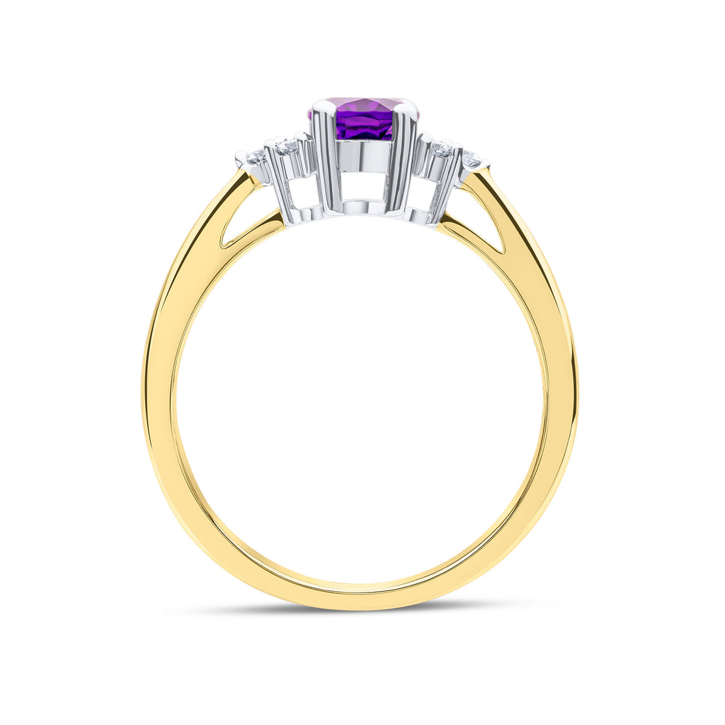 9CT Yellow Gold Oval Amethyst & Diamond Trefoil Ring 7x5mm