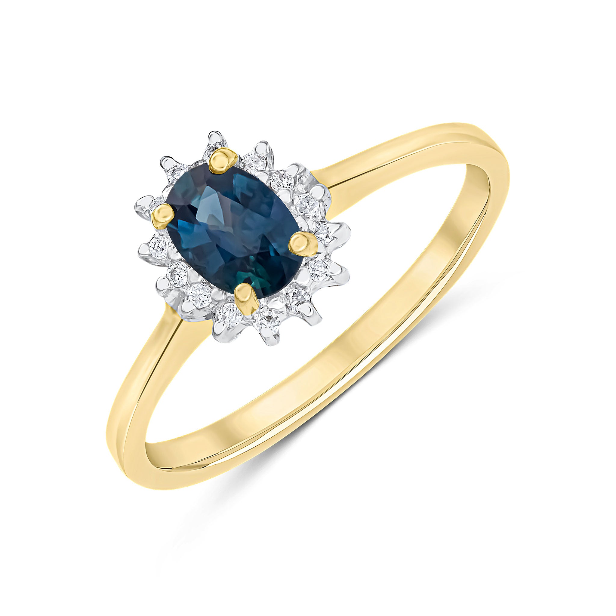 9CT Yellow Gold Oval Blue Sapphire & Diamond Cluster Ring 6x4mm