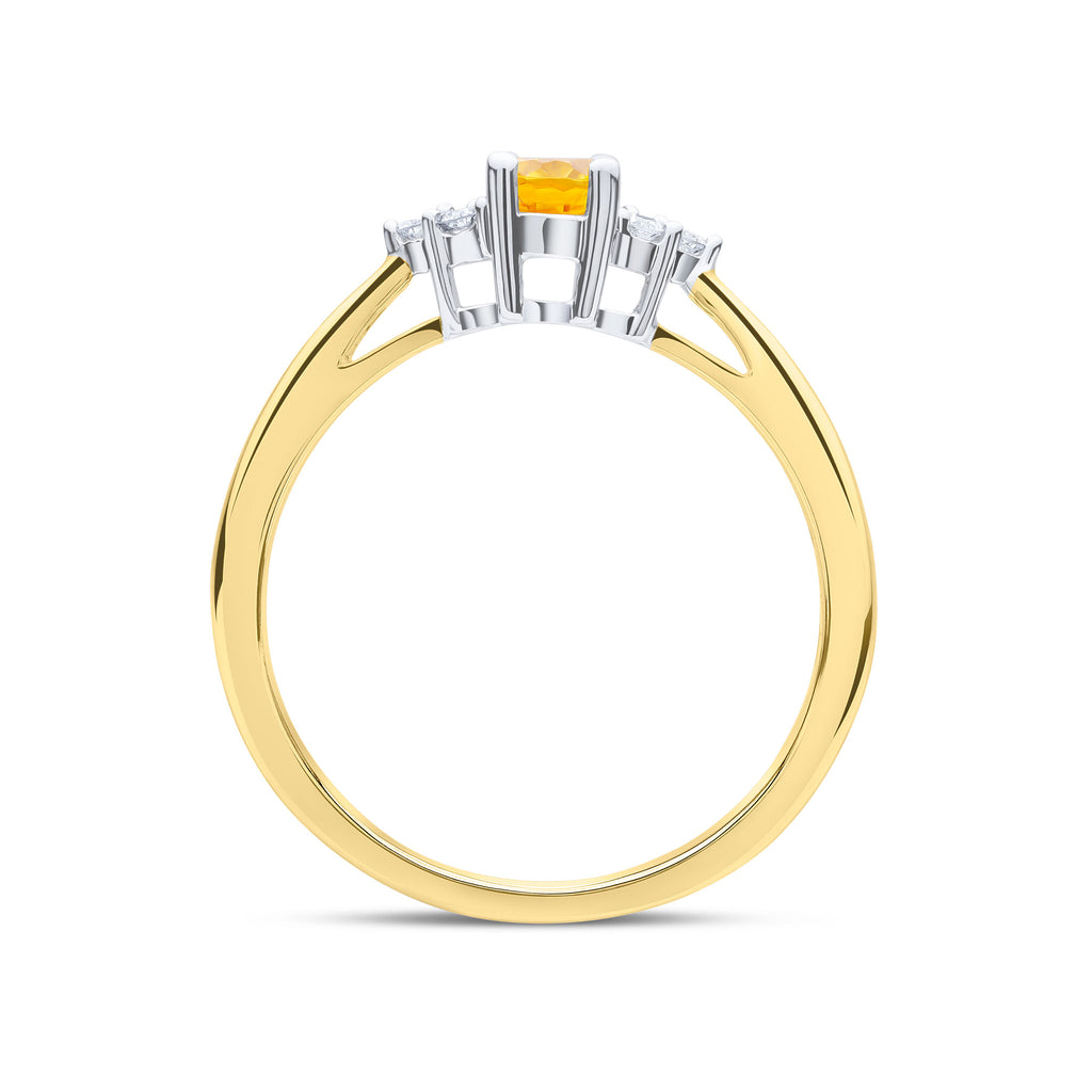 9CT Yellow Gold Oval Citrine & Diamond Trefoil Ring 6x4mm