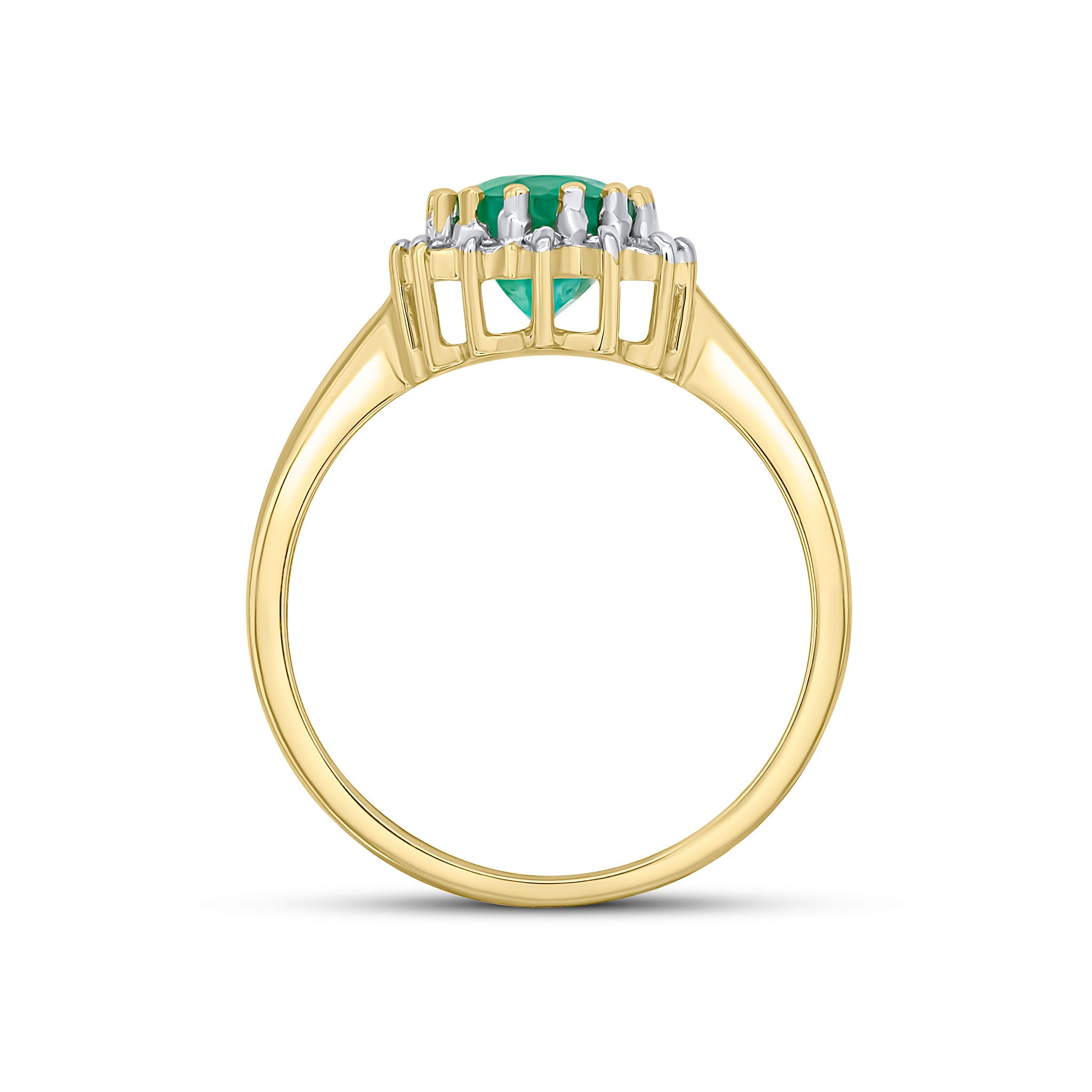 9CT Yellow Gold Oval Emerald & Diamond Cluster Ring 8x6mm
