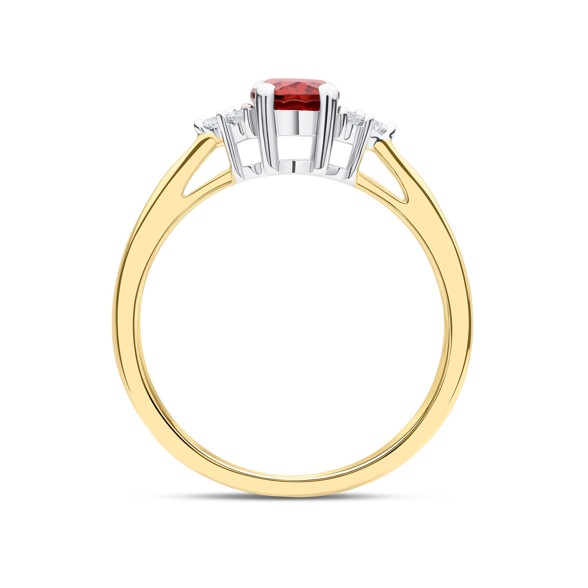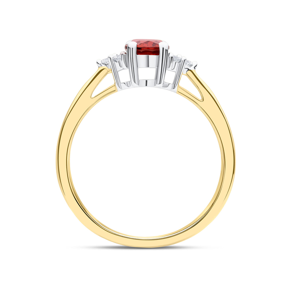 9CT Yellow Gold Oval Garnet & Diamond Trefoil Ring 7x5mm