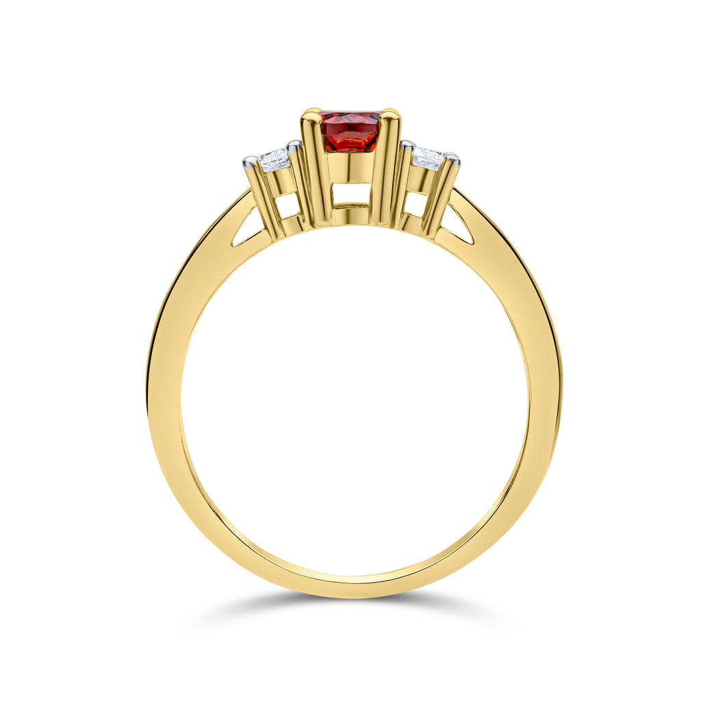 9CT Yellow Gold Oval Garnet & Round Diamond Claw Set Three Stone Ring 7x5mm