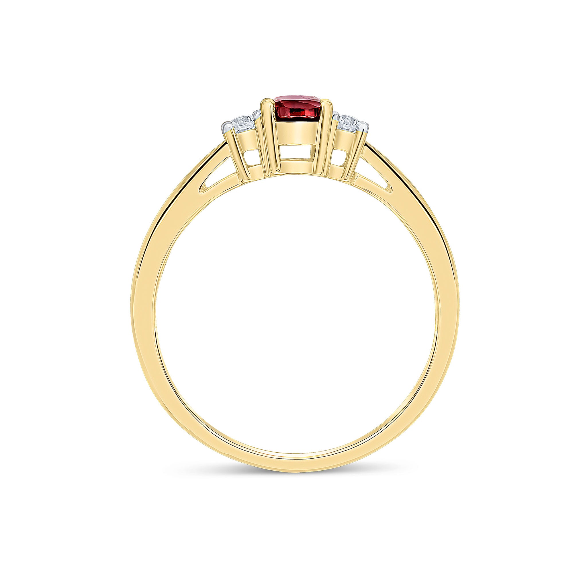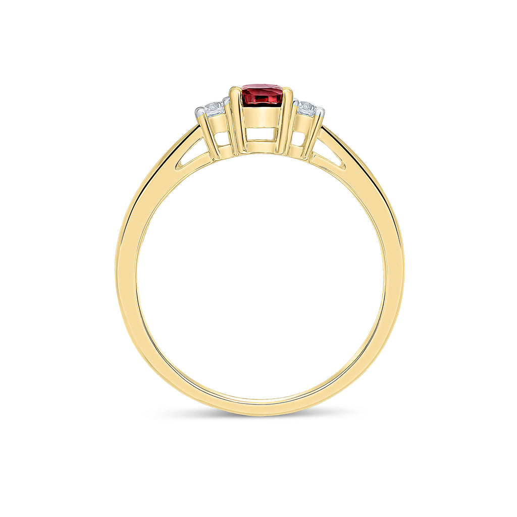 9CT Yellow Gold Oval Garnet & Round Diamond Claw Three Stone Ring 6x4mm